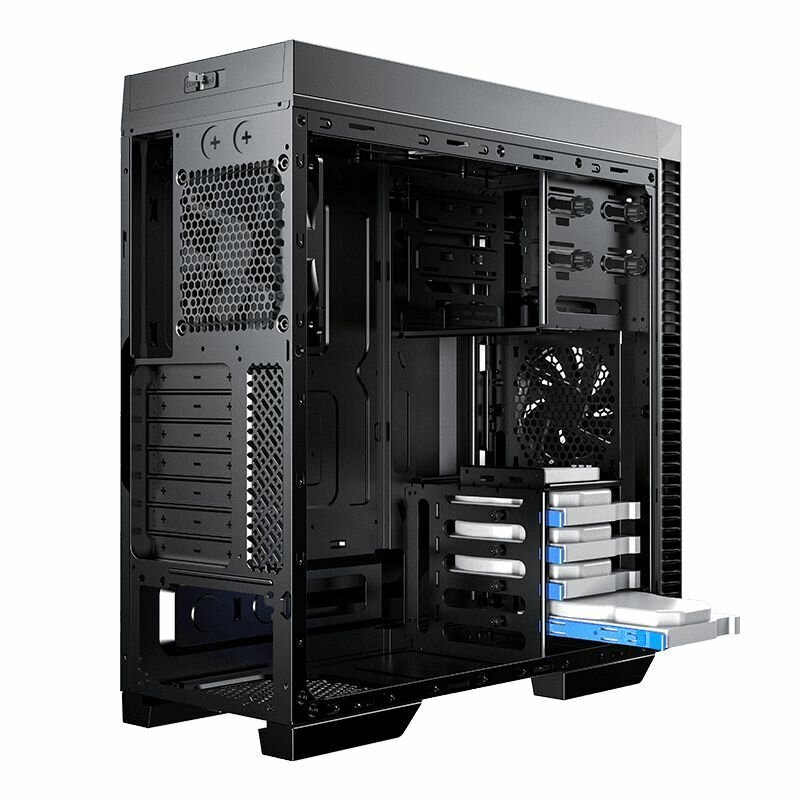 | Плюсы: | Корпус хороший, удобный. Все кнопки и разъемы сверху, что удобно когда корпус у вас под столом. Куча кулеров, с регуляторами по зонам. |