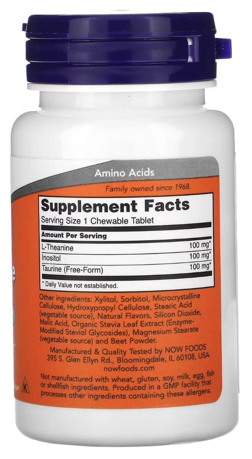 Таблетки NOW Chewable L-Theanine, 100 мг, 90 шт.