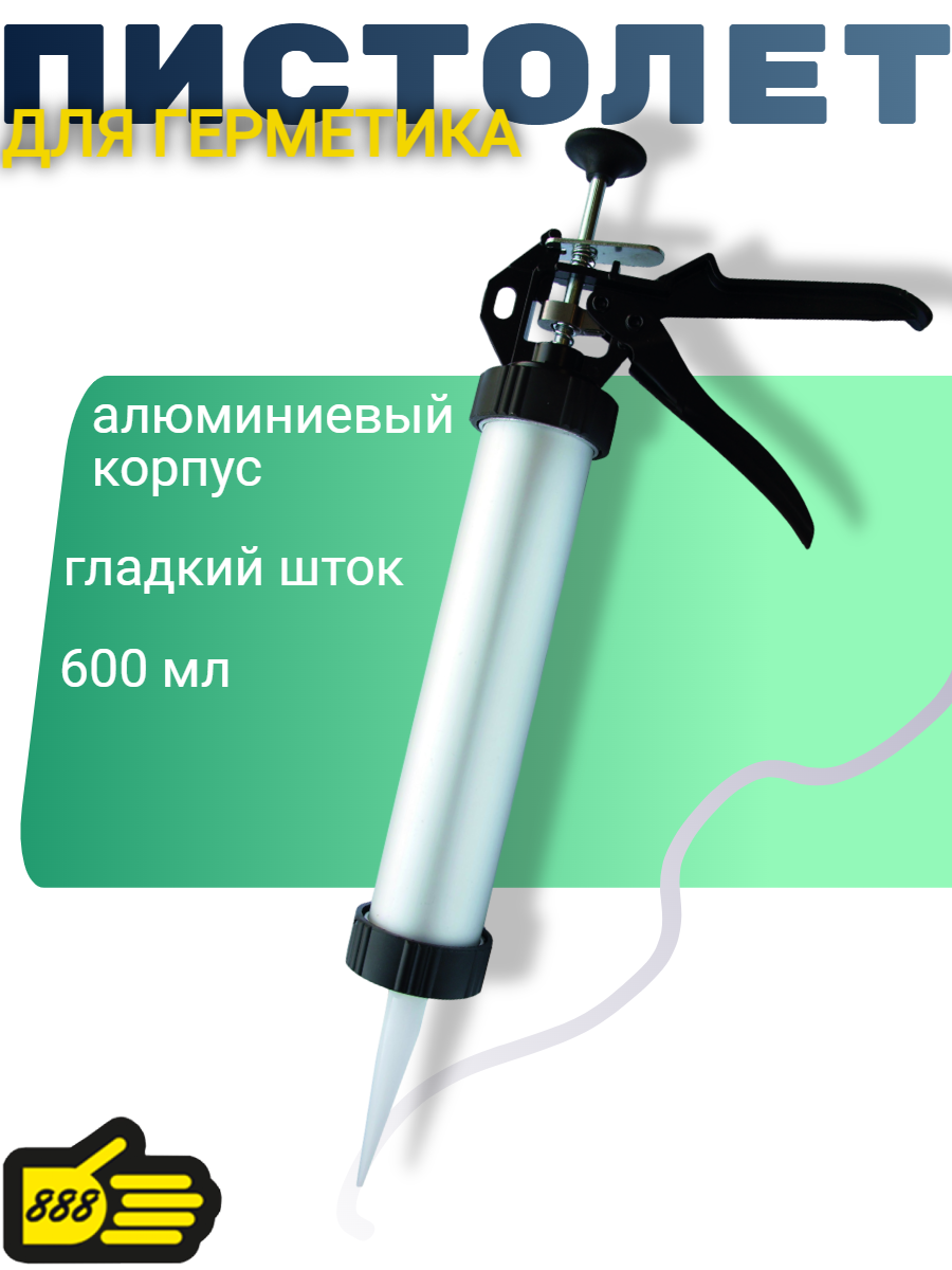 Пистолет д/герм. (туб) 600мл, /закрытый глад.шток, алюм.корп. (888) 3057080