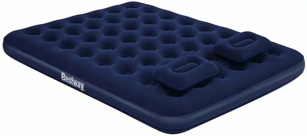 Надувной матрас 203х152х22 см, 2 подушки, насос, Bestway, синий, 67374 BW