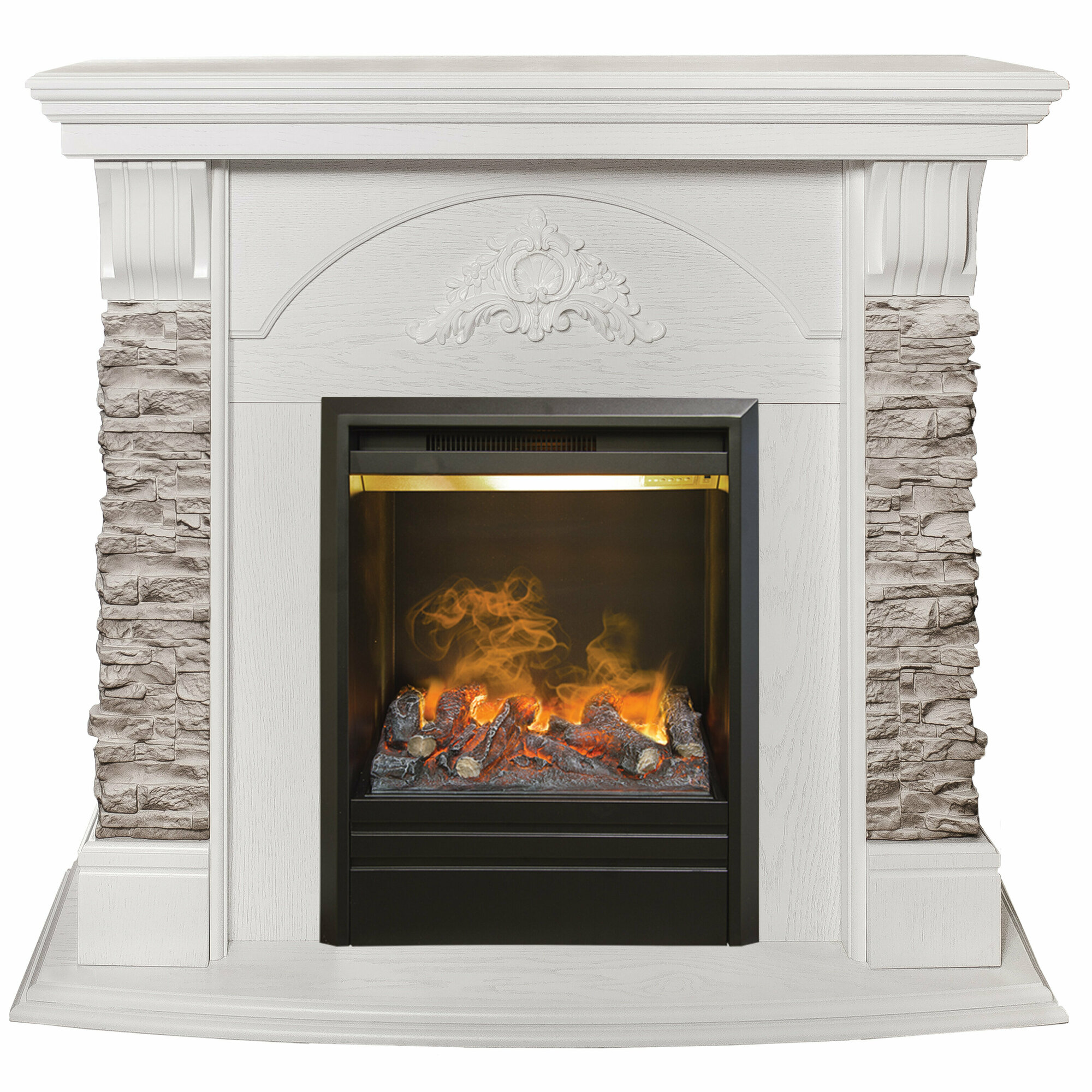 Купить Электрокамин RealFlame Athena GR WT с 3D Olympic, имитация живого пламени 3D, увлажнение, пульт ДУ, обогрев
