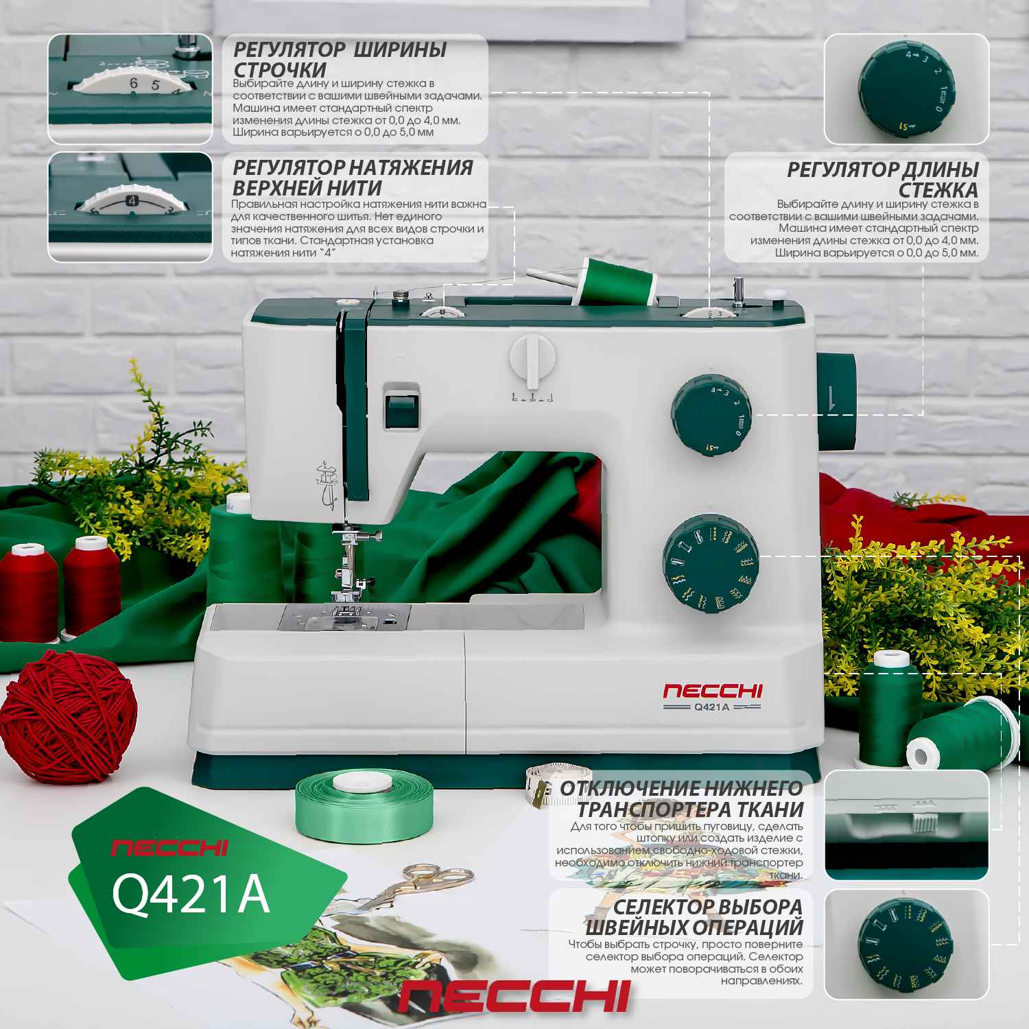 Швейная машина Necchi Q421A, белый/зеленый