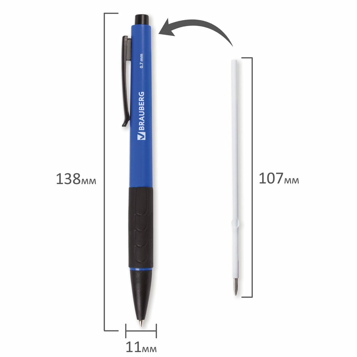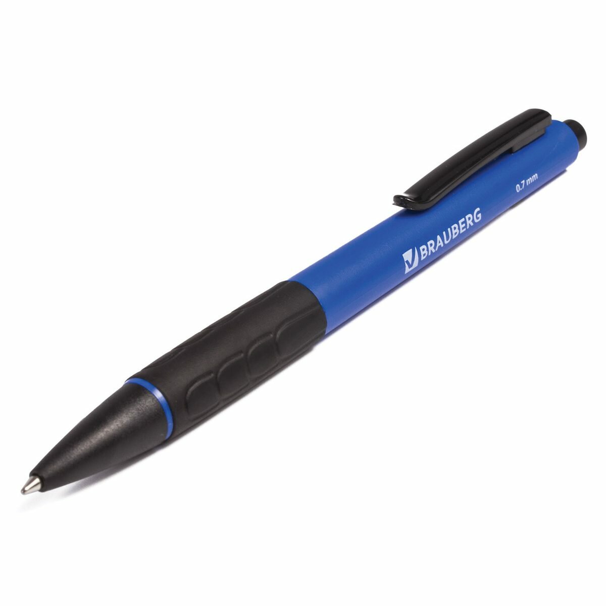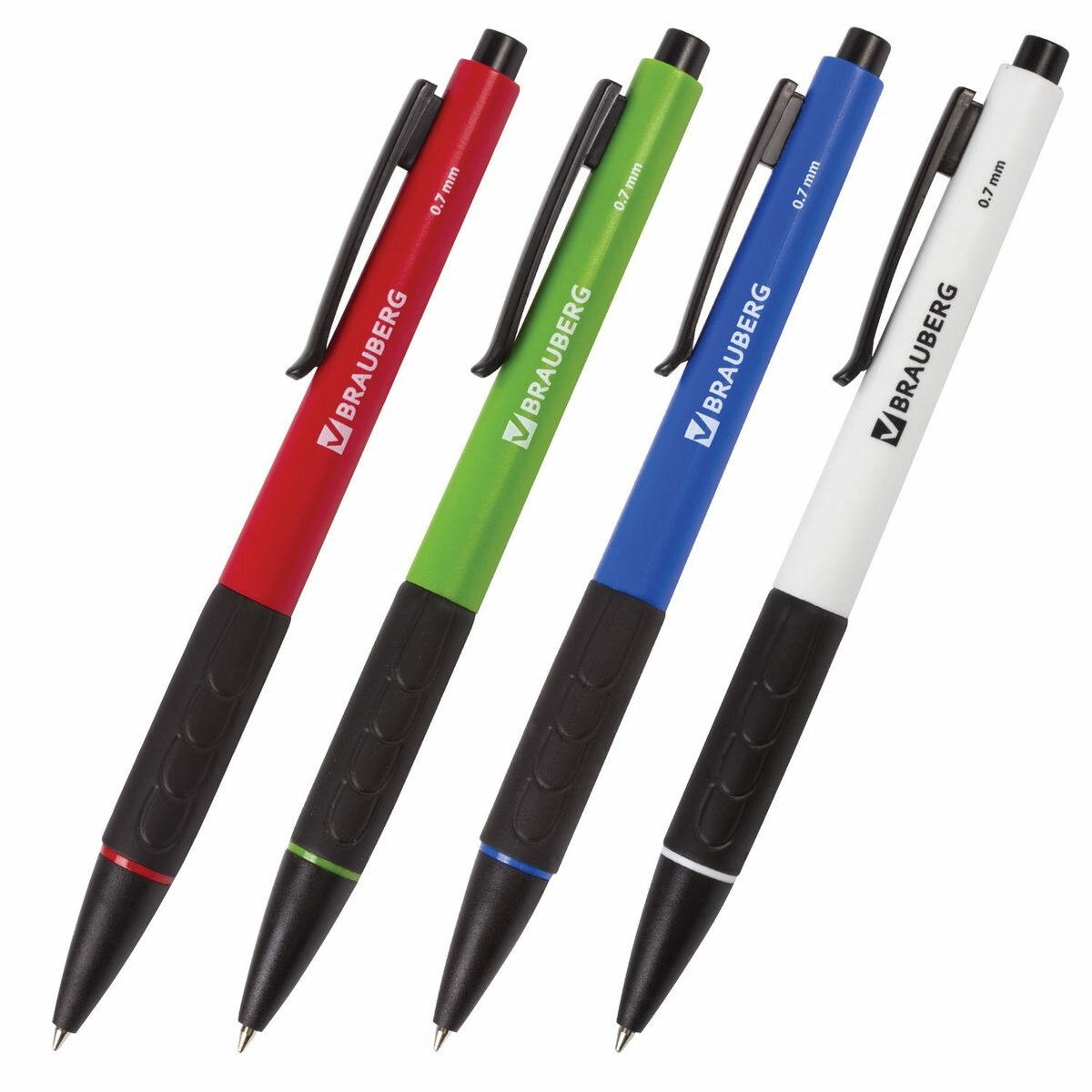 Ручка шариковая автоматическая с грипом BRAUBERG Klasse, синяя, корпус ассорти, узел 0,7 мм, линия письма 0,35 мм, 140588, (48 шт.)