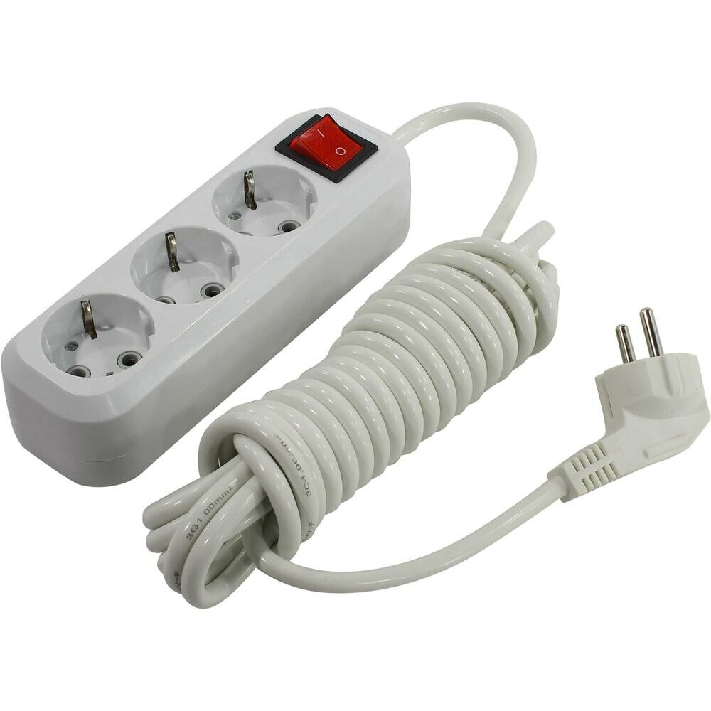 Удлинитель Smartbuy, 3 розетки, 5м, 16 А, 3500 Вт, ПВС 3х1 мм2, с з/к, с выкл., белый Smartbuy 30323