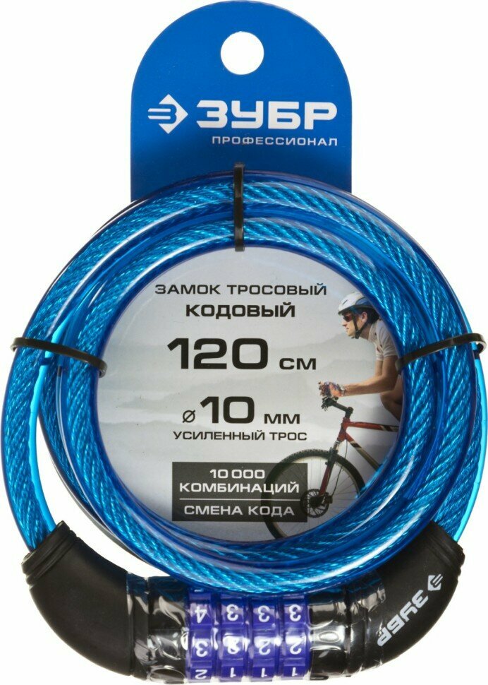 Купить ЗУБР Замок ЗУБР "профессионал", тросовый, кодовый, с изменяемым кодом, длина троса - 1200мм, d 10мм, ( 37262-120 )