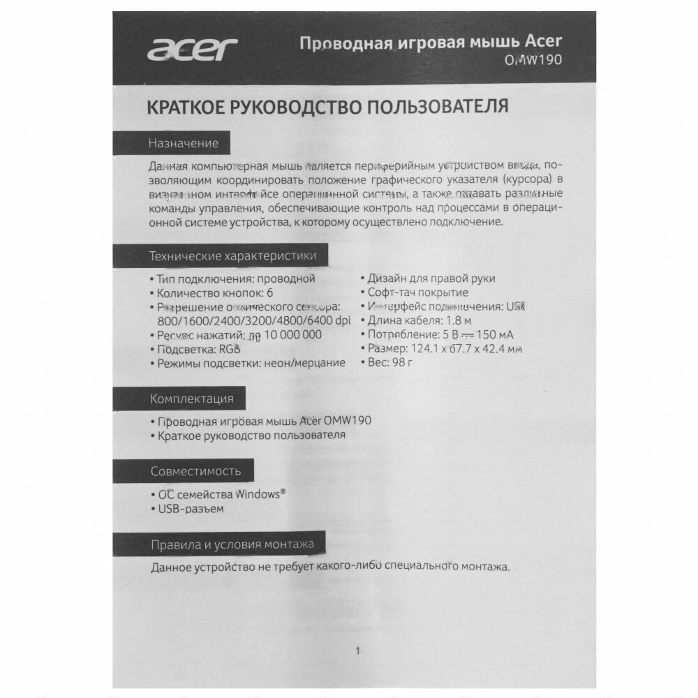 Купить Игровая мышь Acer OMW190 (ZL. MCEEE.00T)