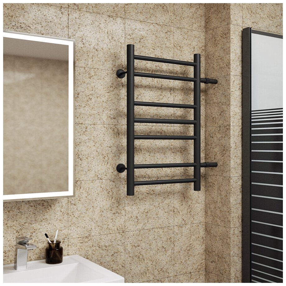 Купить Полотенцесушитель водяной BAU В10 50х80, П7 (2+3+2) боковое подключение 50, черный матовый RAL 9005