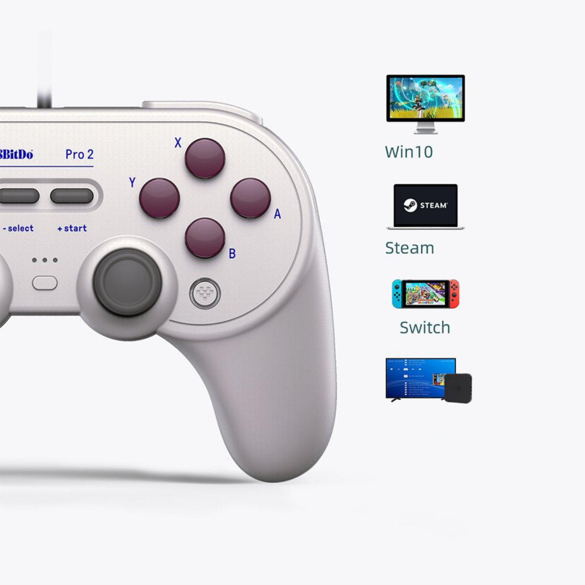 Купить Проводной геймпад 8BitDo Pro2 для Steam, Nintendo Switch, Android, ПК, серый