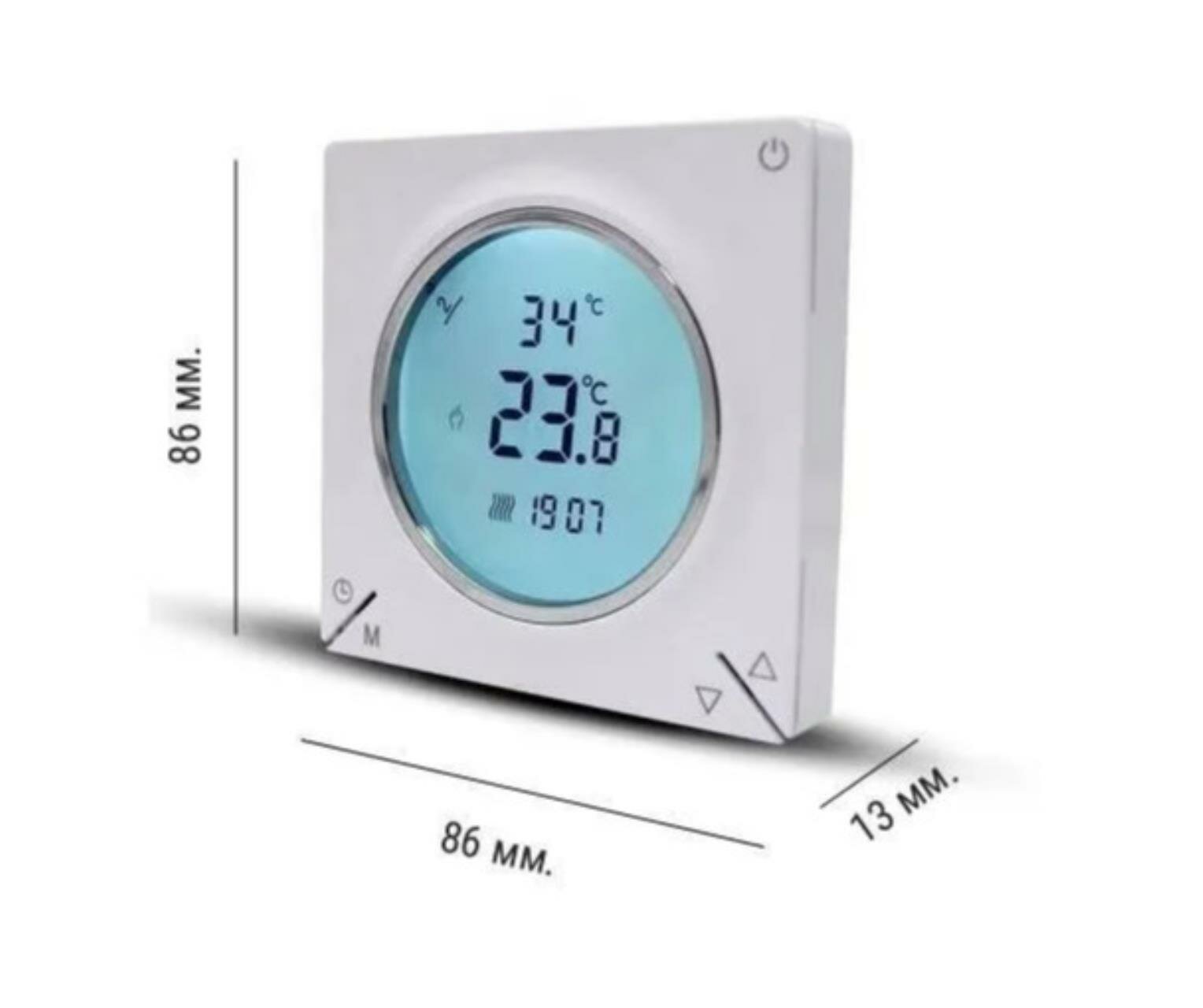 | Минусы: | Датчик в комплекте живет своей жизнью. Температура показывается 19,5 градусов, то выше, то ниже. Хоть феном на него дуй, хоть в ледяную воду опускай. Хорошо что кроме самого кабеля теплого пола догадался проверить датчик до того, как замуровал |