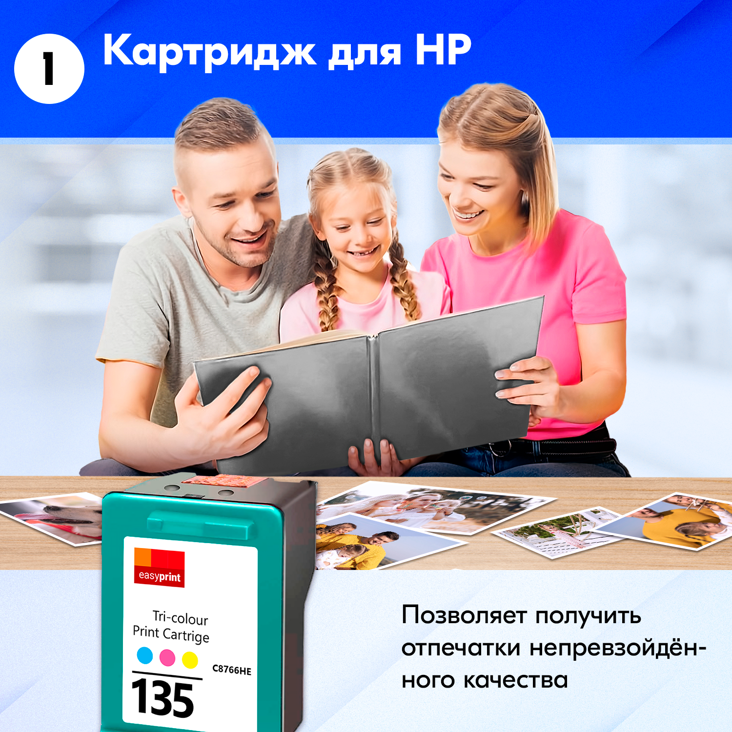 Картридж для HP 135, HP PSC 2353, 1513, 1613, Photosmart 2573, C3138, 8153 и др. с чернилами для струйного принтера, Цветной (Color), 1 шт. интересное: