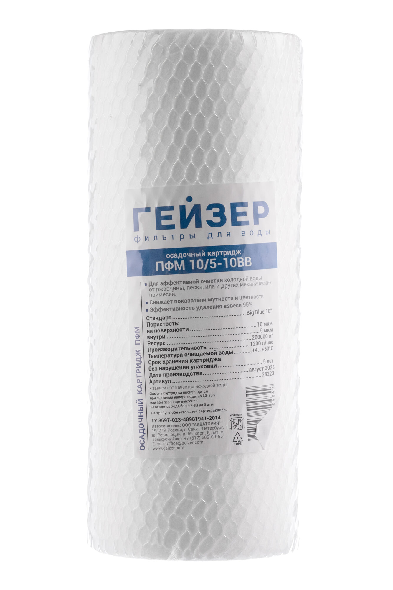 Картридж для очистки холодной воды Гейзер ПФМ 10/5-10BB, Big Blue 10"