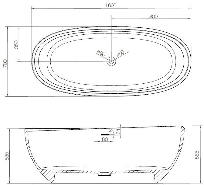 Ванна из искусственного камня NT Bagno Venezia NT204 160x70 матовая