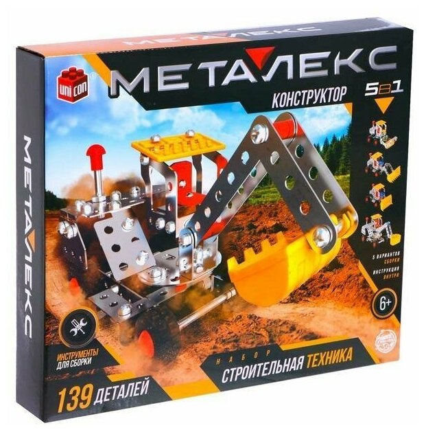 Конструктор металлический Строительная техника, 5 в 1, 139 деталей