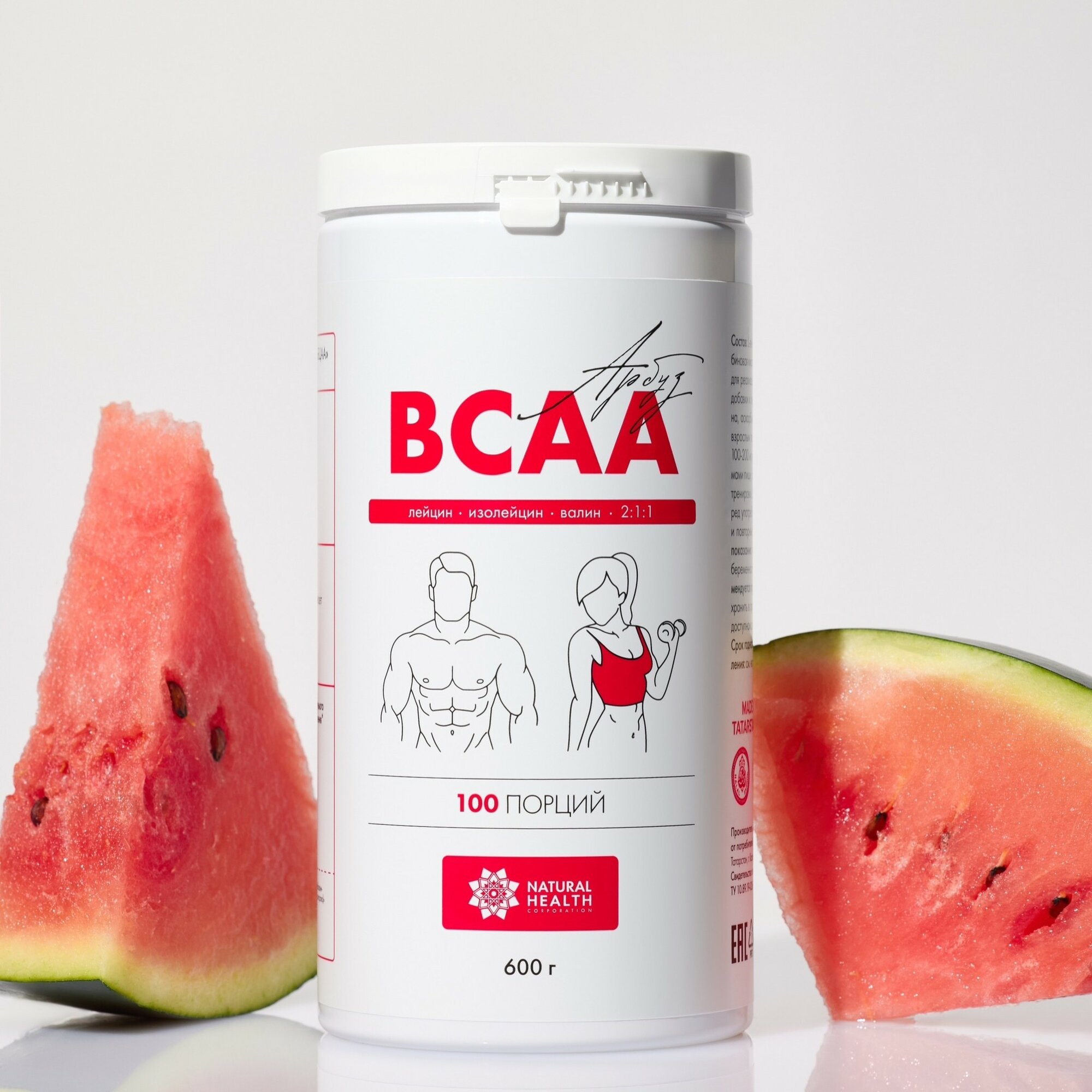 Купить BCAA 2:1:1 порошок 600 г Natural Health со вкусом арбуза. Аминокислоты BCAA для роста мышц, восстановления, выносливости