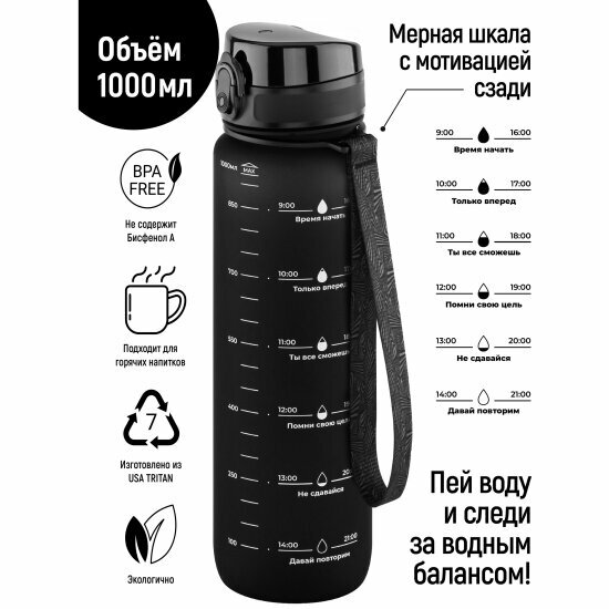 Бутылка для воды 1000 мл 7,8*7,8*28,5 см "Style Matte" мотивационная черная
