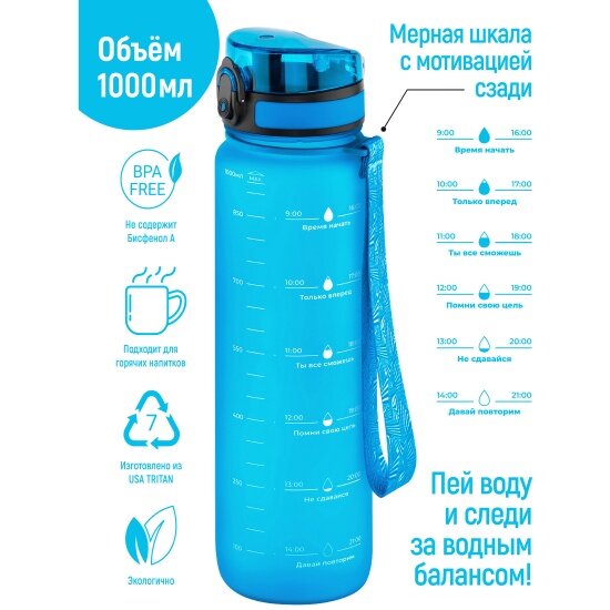 Бутылка для воды 1000 мл 7,8*7,8*28,5 см "Style Matte" мотивационная аквамарин-морская волна