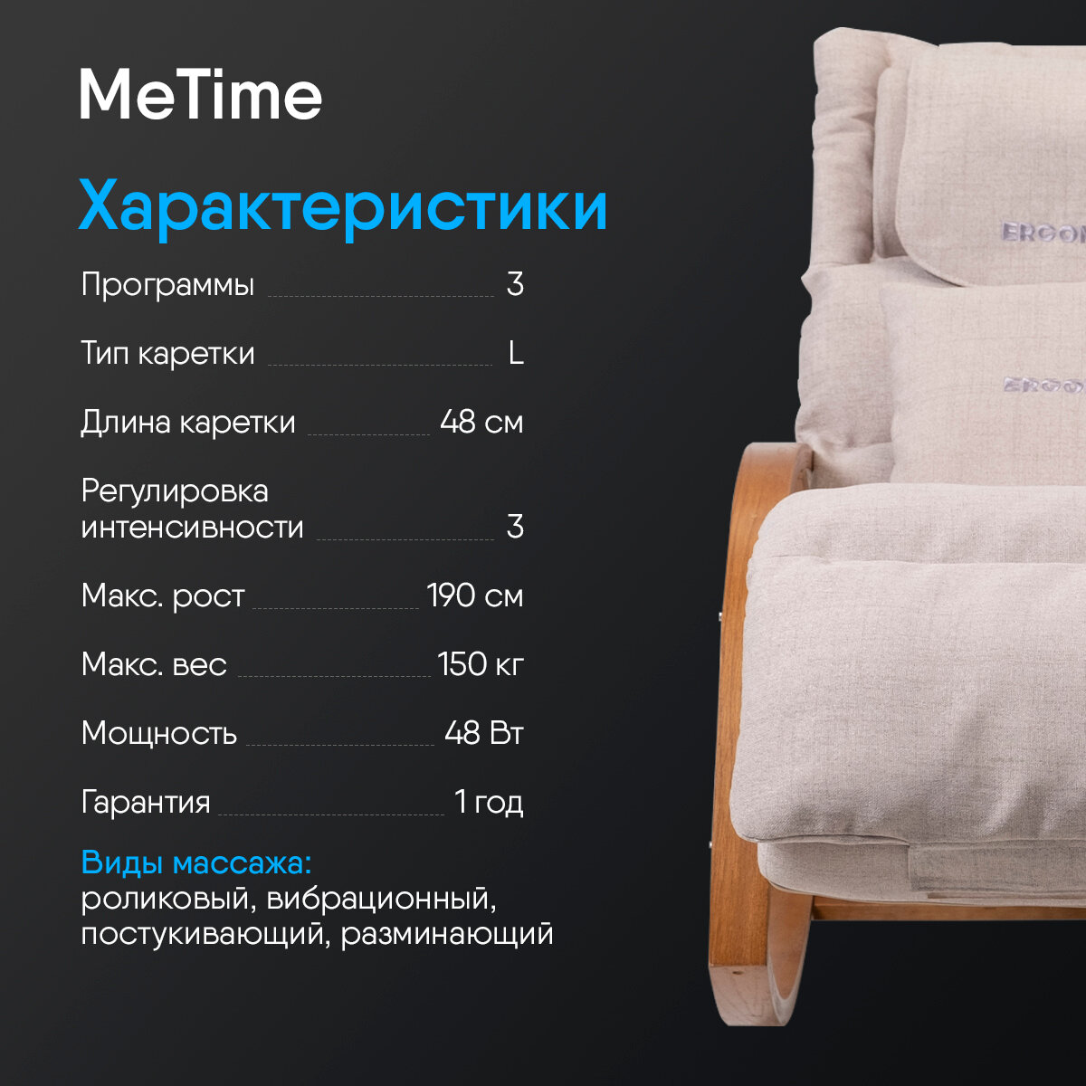 Массажное кресло-качалка Ergonova MeTime Beige, с подогревом, функция вибрации интересное: