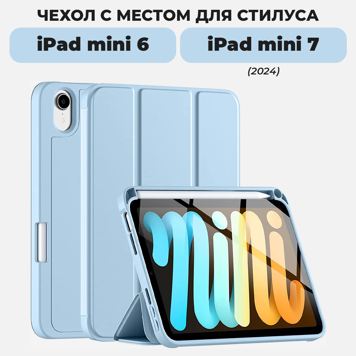 Купить Чехол для планшета iPad mini 6 и iPad mini 7 (2024) с местом для стилуса, голубой