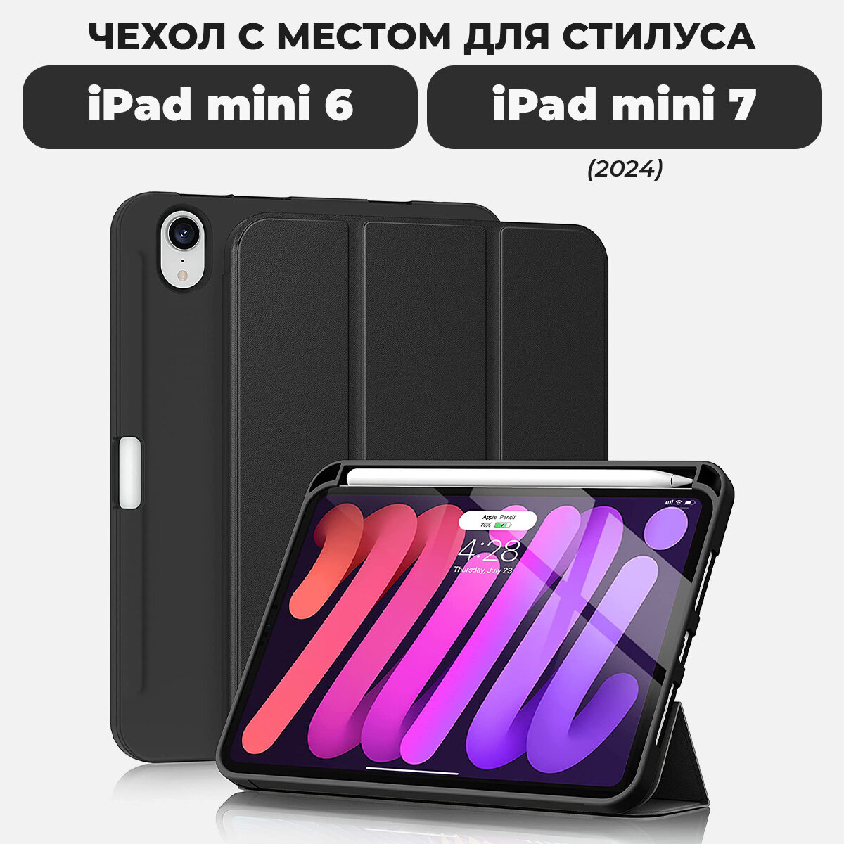 Купить Чехол для планшета iPad mini 6 и iPad mini 7 (2024) с местом для стилуса, чёрный