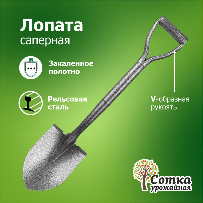 Лопата саперная, рельсовая сталь `Урожайная сотка` с черенком и V ручкой 72 см, мини интересное: