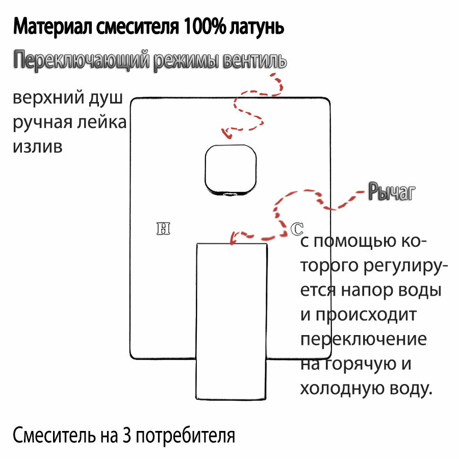 Встраиваемая Душевая Система Со Смесителем И Тропическим Душем На 3 Потребителя Хром Elbe TVZ-0812 ALMAes Латунь