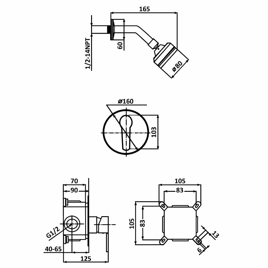 | Форма верхнего душа | квадратная |