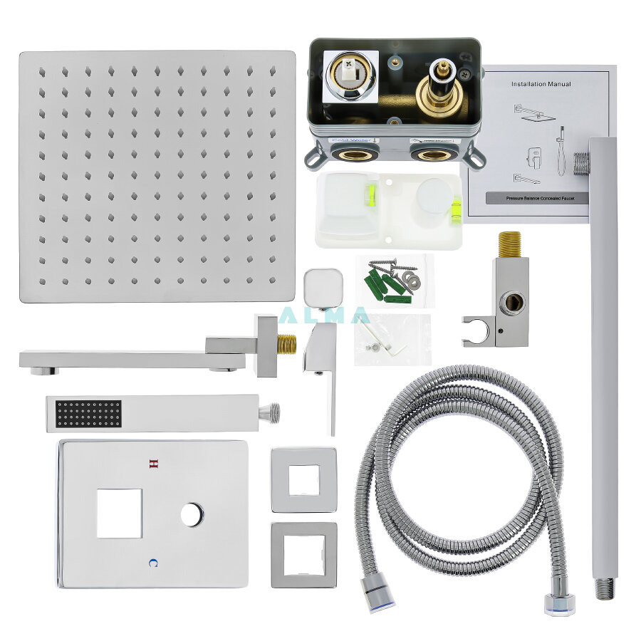 Купить Встраиваемая Душевая Система Со Смесителем И Тропическим Душем На 3 Потребителя Хром Elbe TVZ-0812 ALMAes Латунь