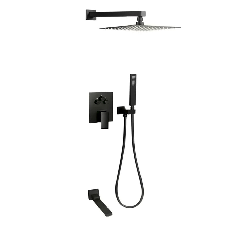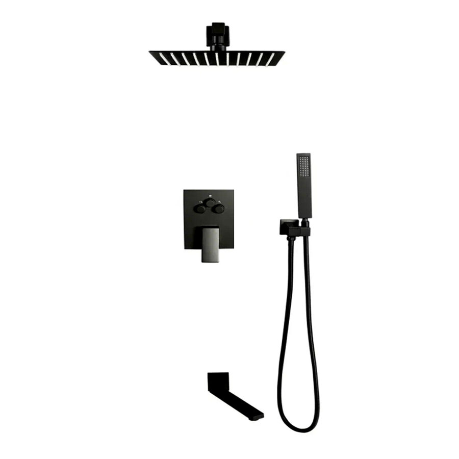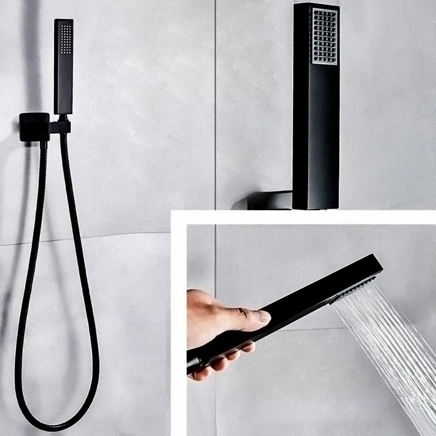 Купить Встраиваемая Душевая Система Со Смесителем И Тропическим Душем На 3 Потребителя Черная Матовая Eden TVZ-0817 ALMAes Латунь