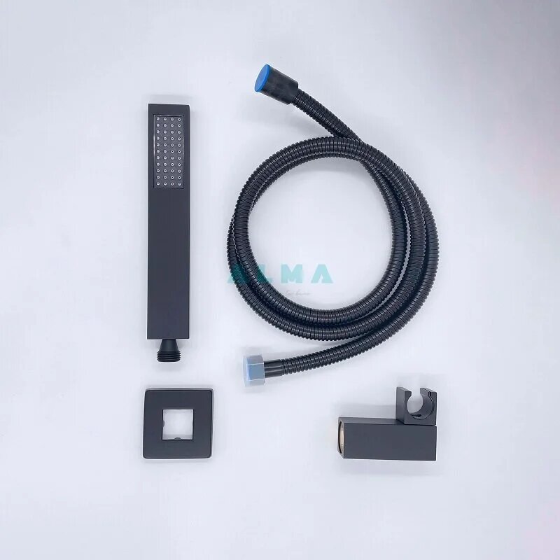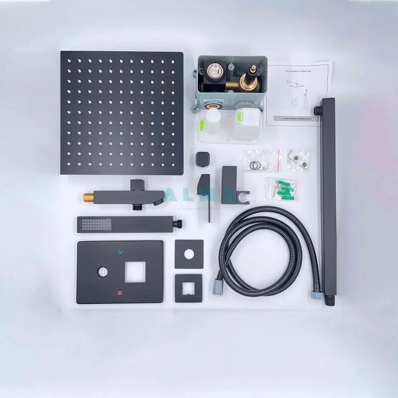 Встраиваемая Душевая Система Со Смесителем И Тропическим Душем На 3 Потребителя Черная Матовая Eden TVZ-0817 ALMAes Латунь