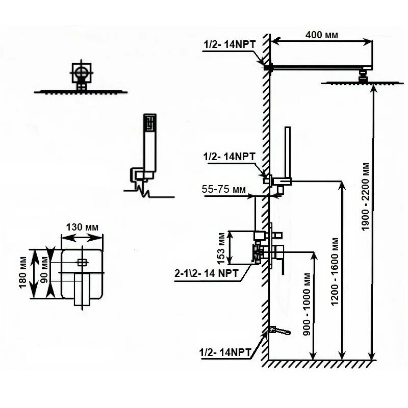 | Форма верхнего душа | квадратная |