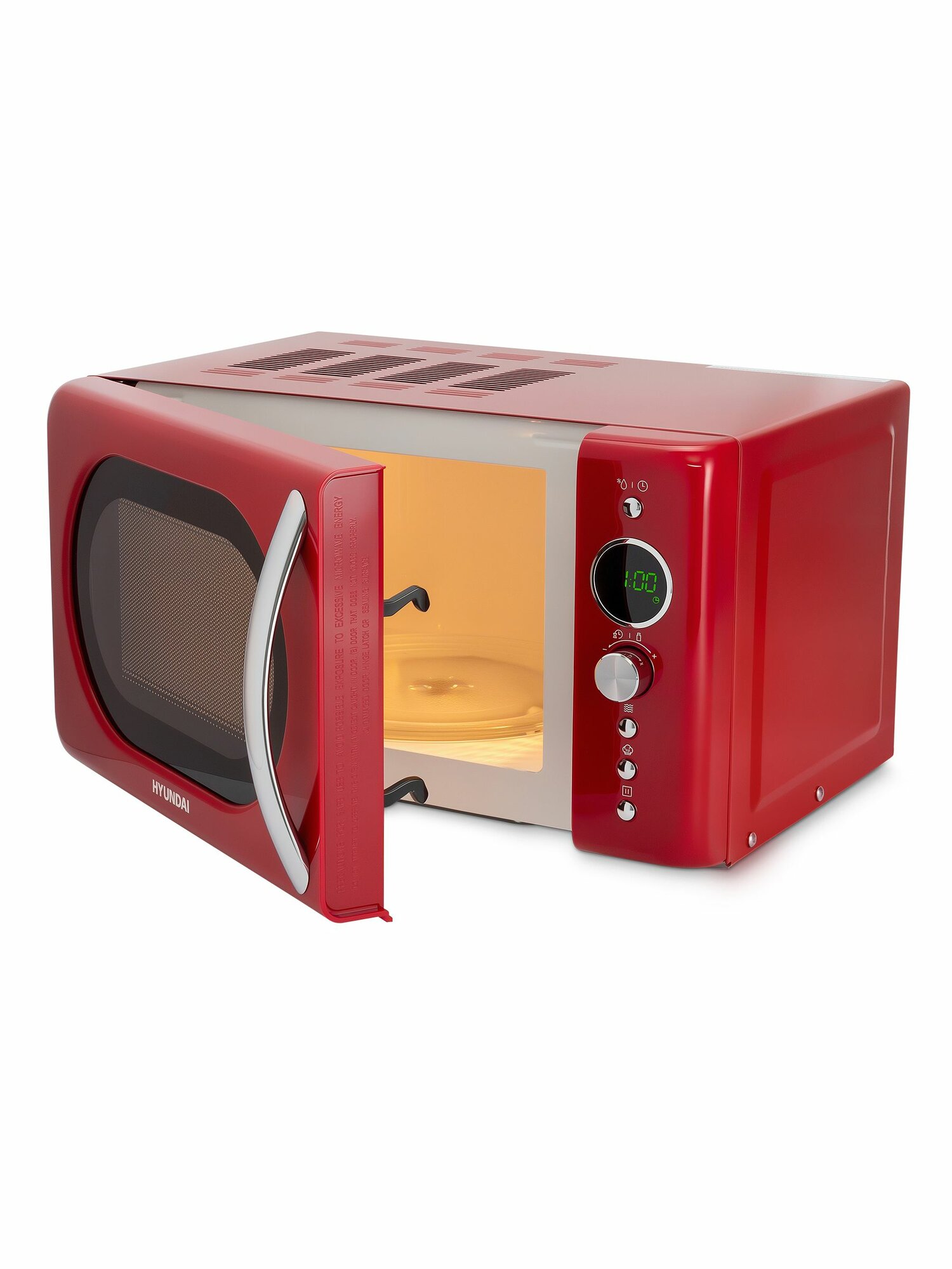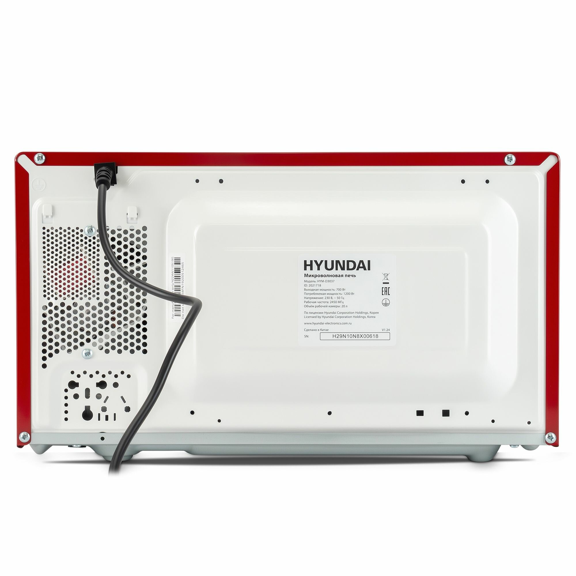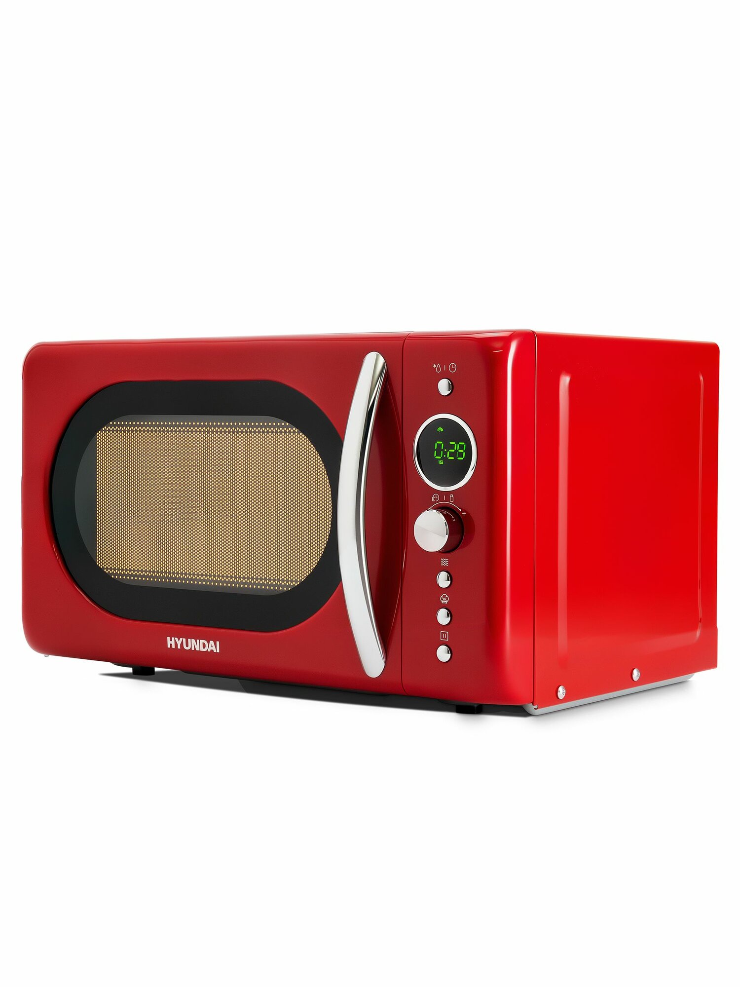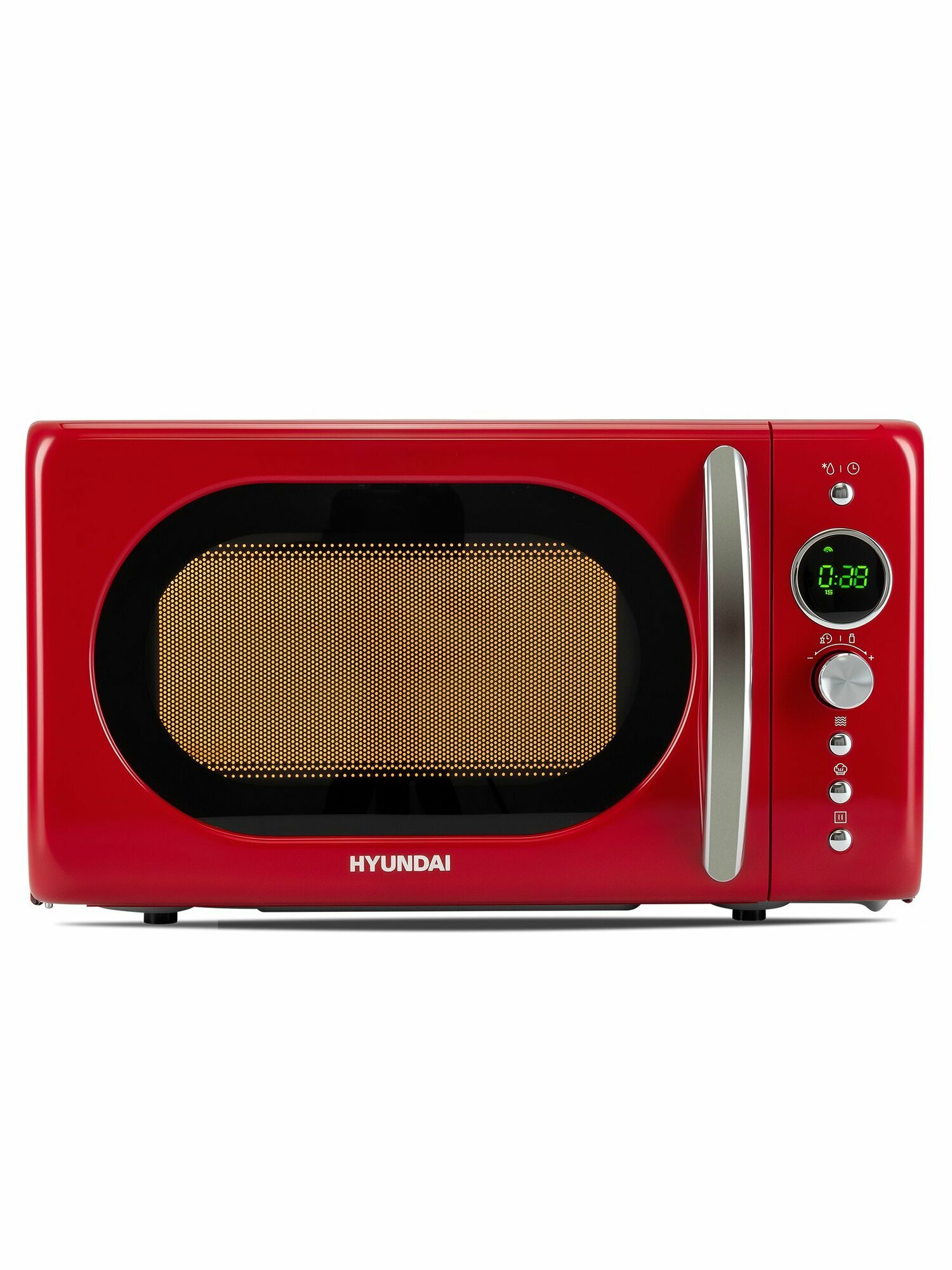 Купить Микроволновая печь Hyundai HYM-D3037 красный, с механическим управлением, поворотным столом 24,5 см, объем камеры 20 л, мощность 700 Вт, открывание дверцы ручкой, функции разогрева и разморозки