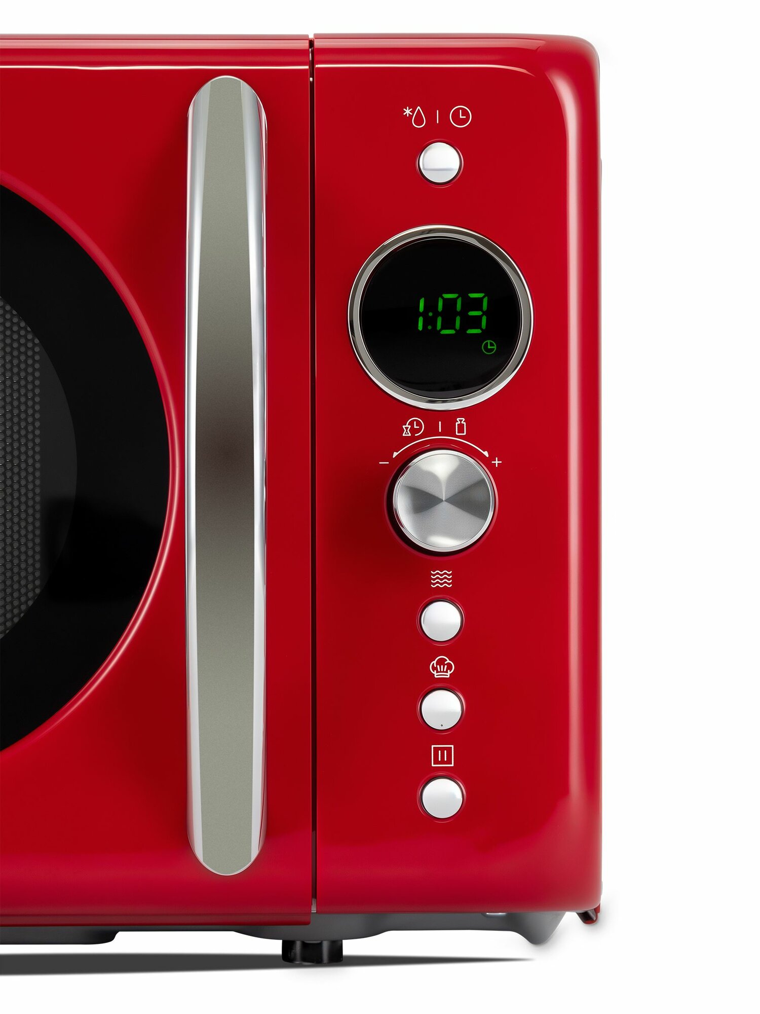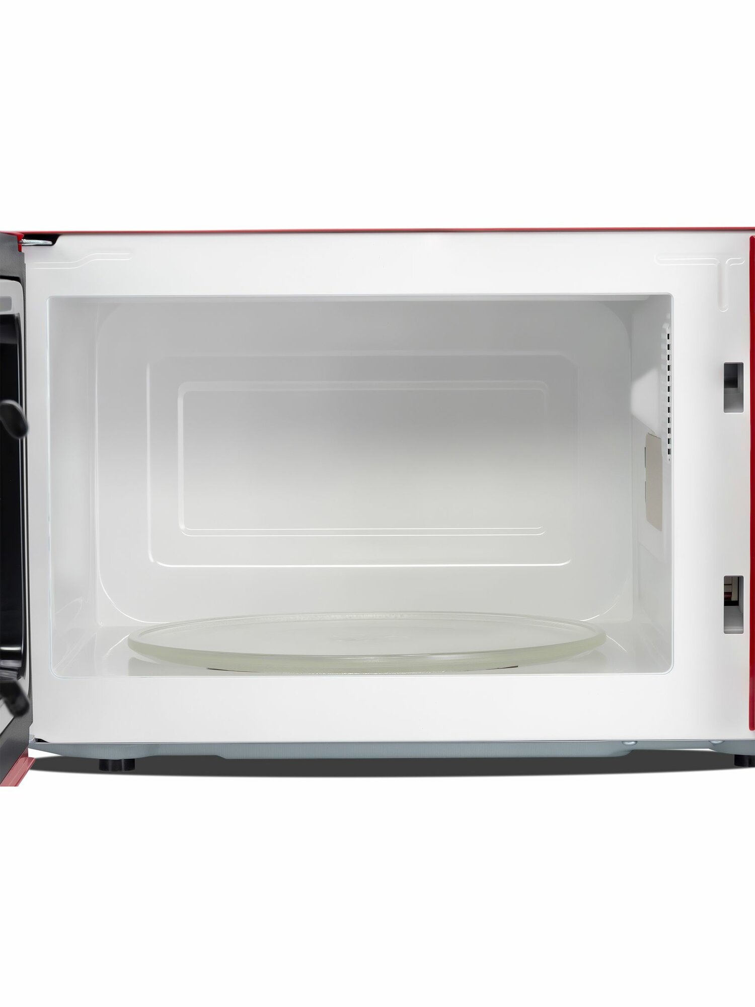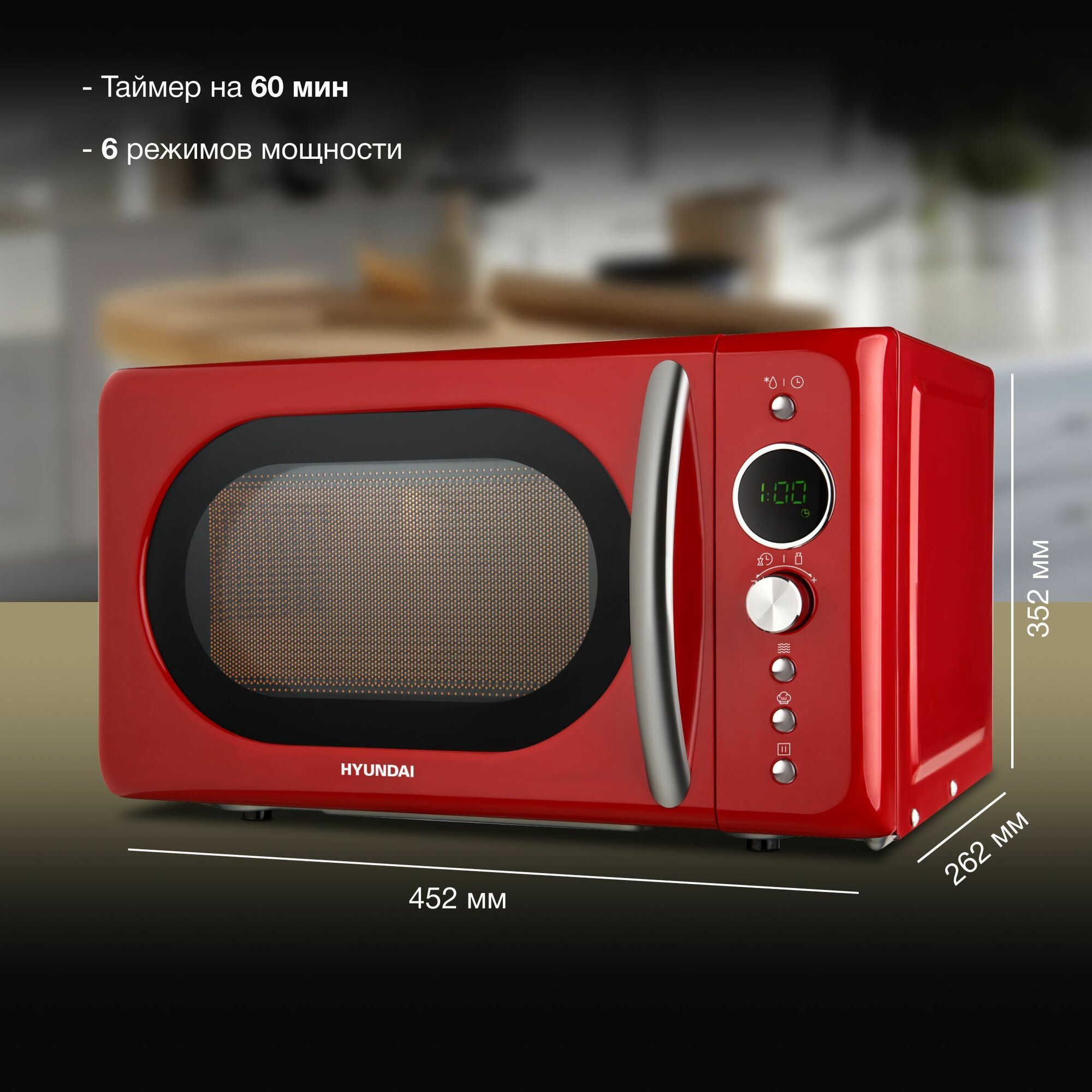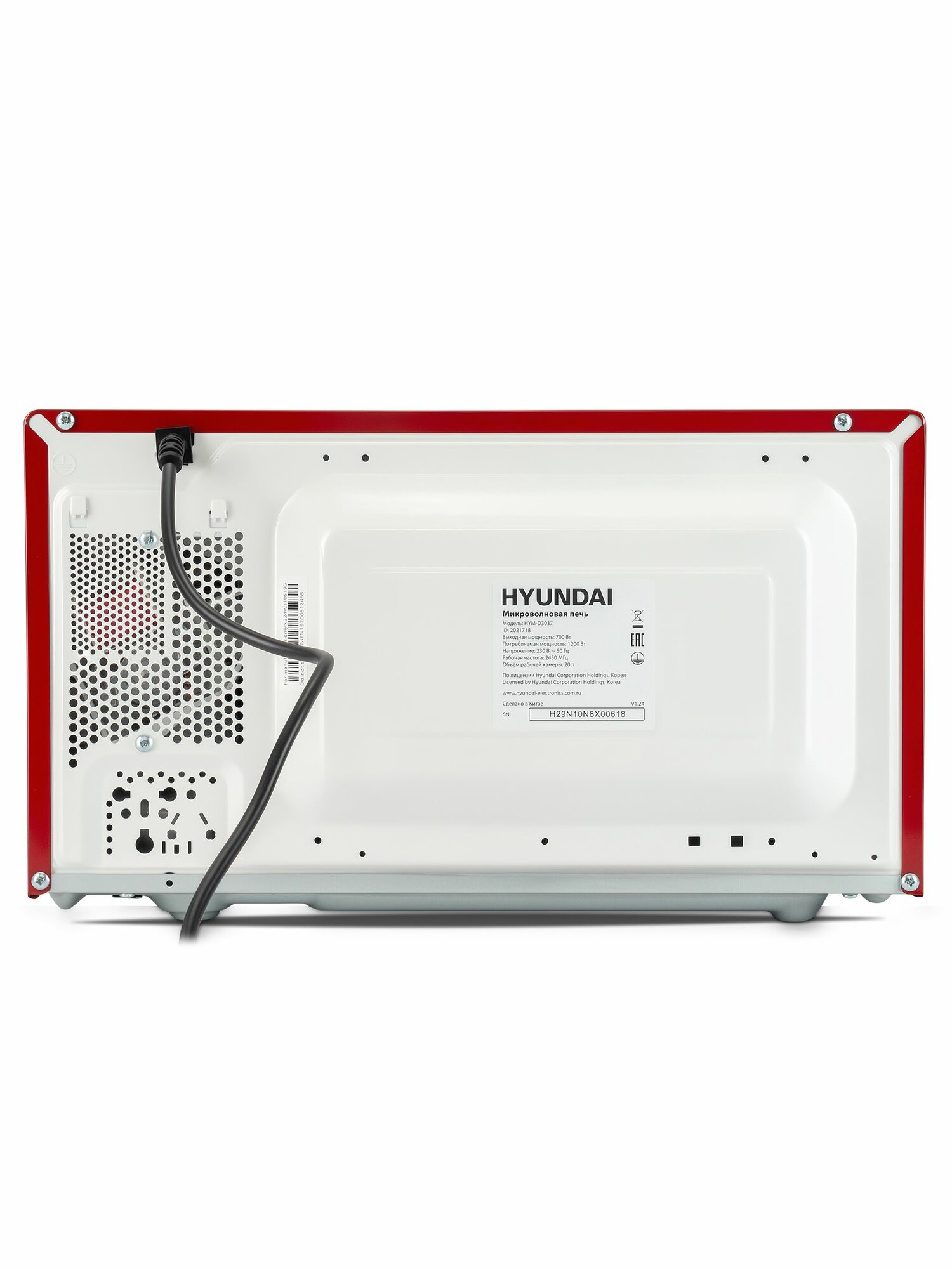 Купить Микроволновая печь Hyundai HYM-D3037 красный, с механическим управлением, поворотным столом 24,5 см, объем камеры 20 л, мощность 700 Вт, открывание дверцы ручкой, функции разогрева и разморозки