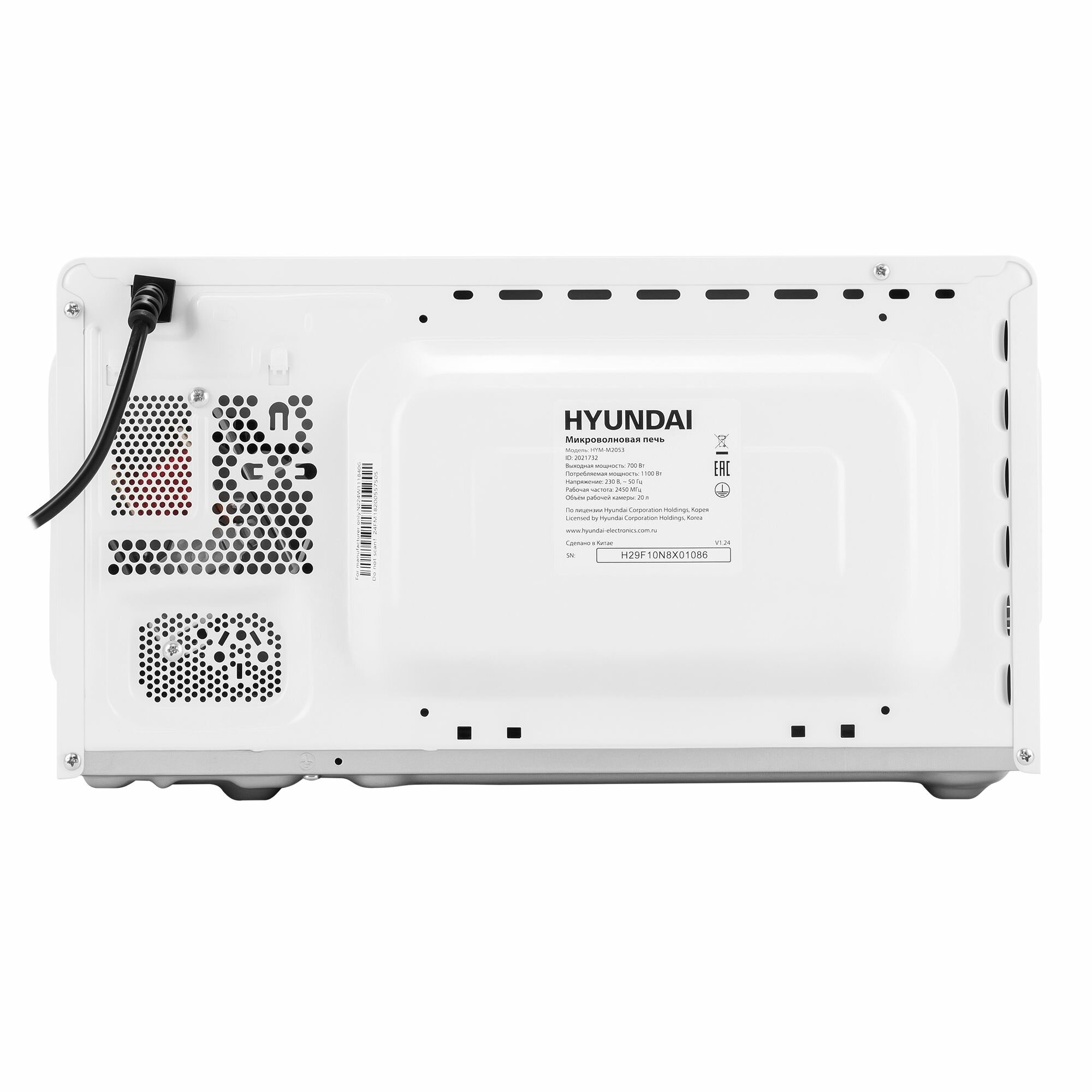 Купить Микроволновая печь Hyundai HYM-M2053 белый, с механическим управлением, поворотным столом 24,5 см, объем камеры 20 л, мощность 700 Вт, открывание дверцы ручкой, функции разогрева и разморозки