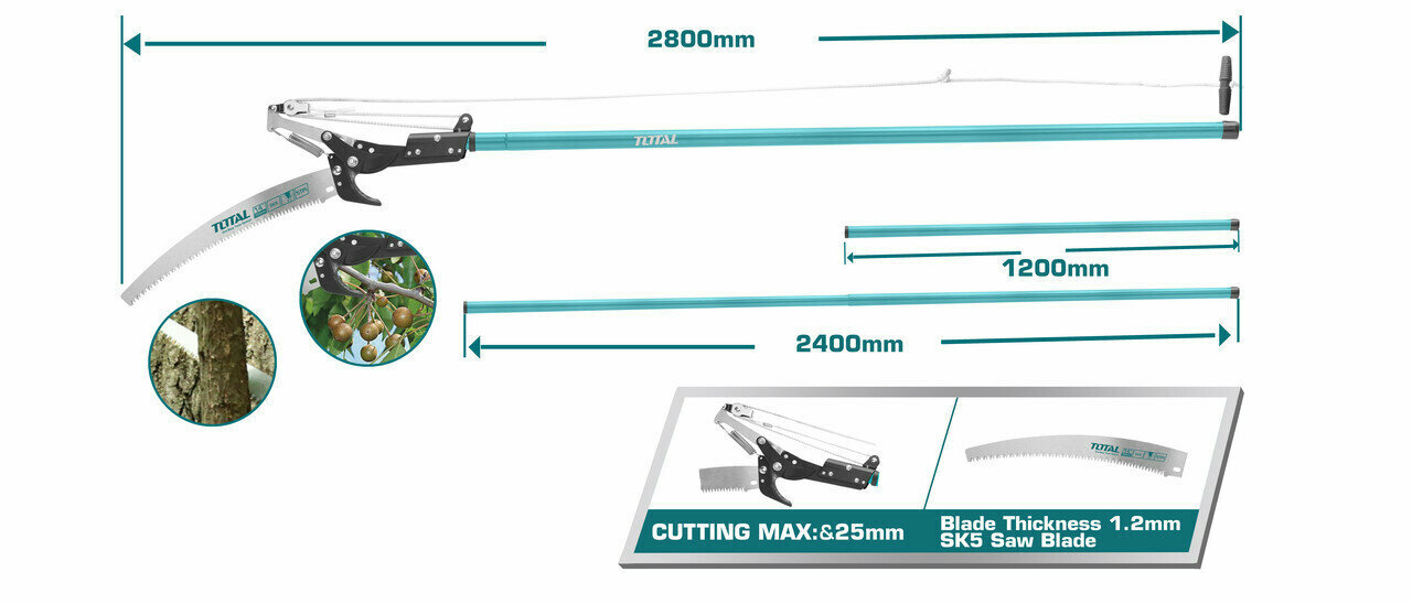 Сучкорез штанговый с ножовкой+ раздвижная штанга 1,2-2,4 м (общая длина-2,8 метра) TOTAL интересное:
