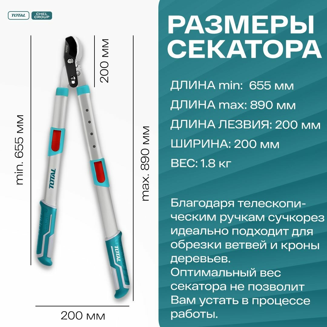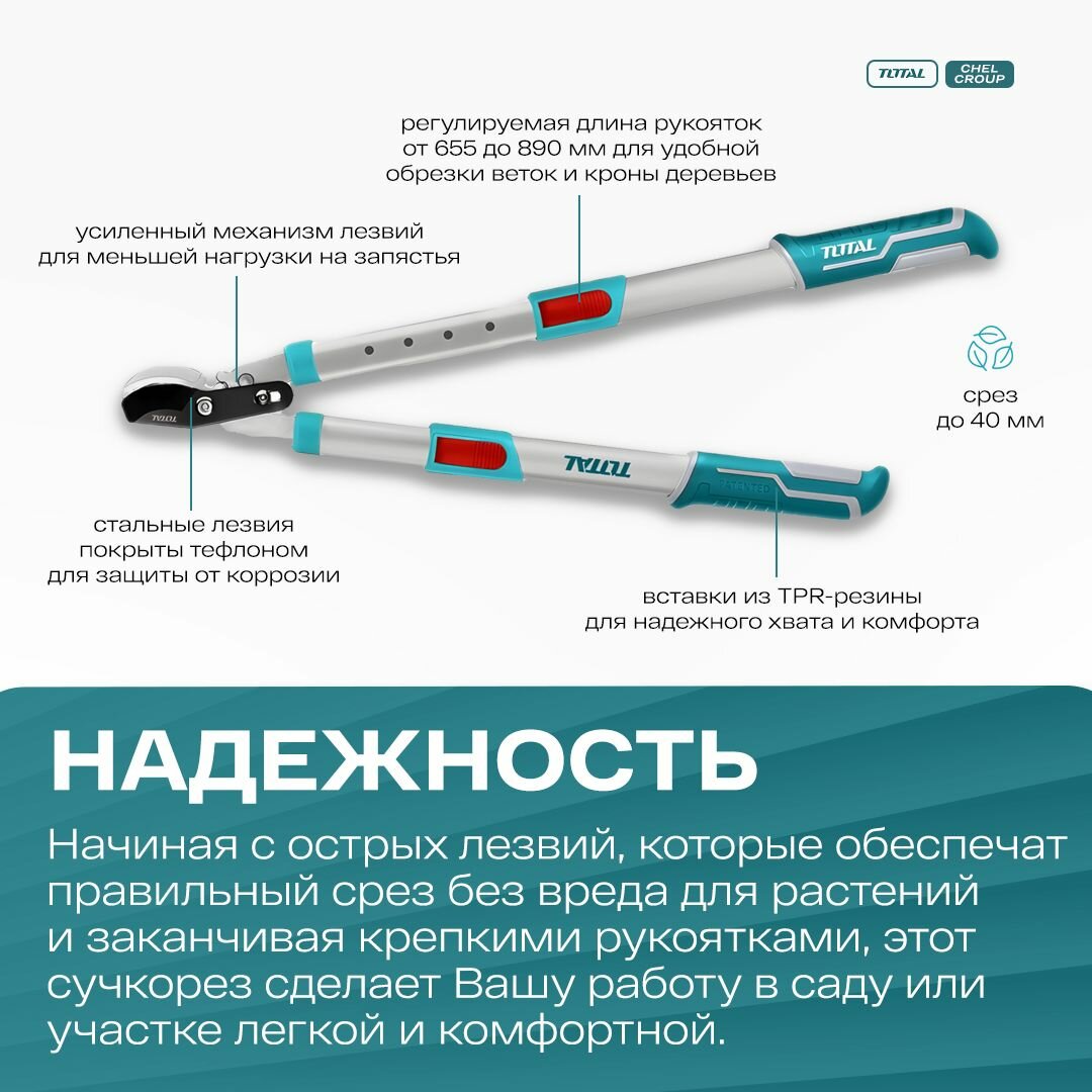 Сучкорез с телескопическими ручками TOTAL 650-850 мм интересное: