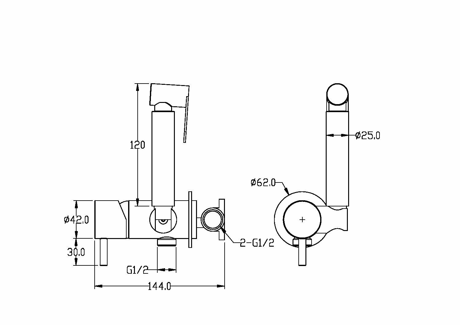 Смеситель на стену Potato P430-6 для биде с гигиеническим душем, настенный, черный