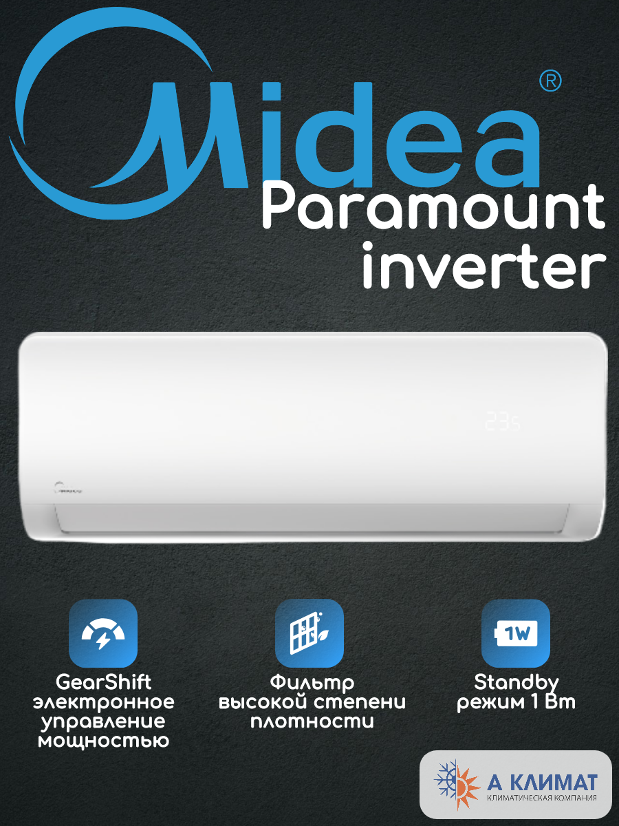 Настенная сплит-система Midea серии Paramount инвертор MSAG1-09N8C2U-I/MSAG1-09N8C2U-O, для помещений до 25 кв.м.