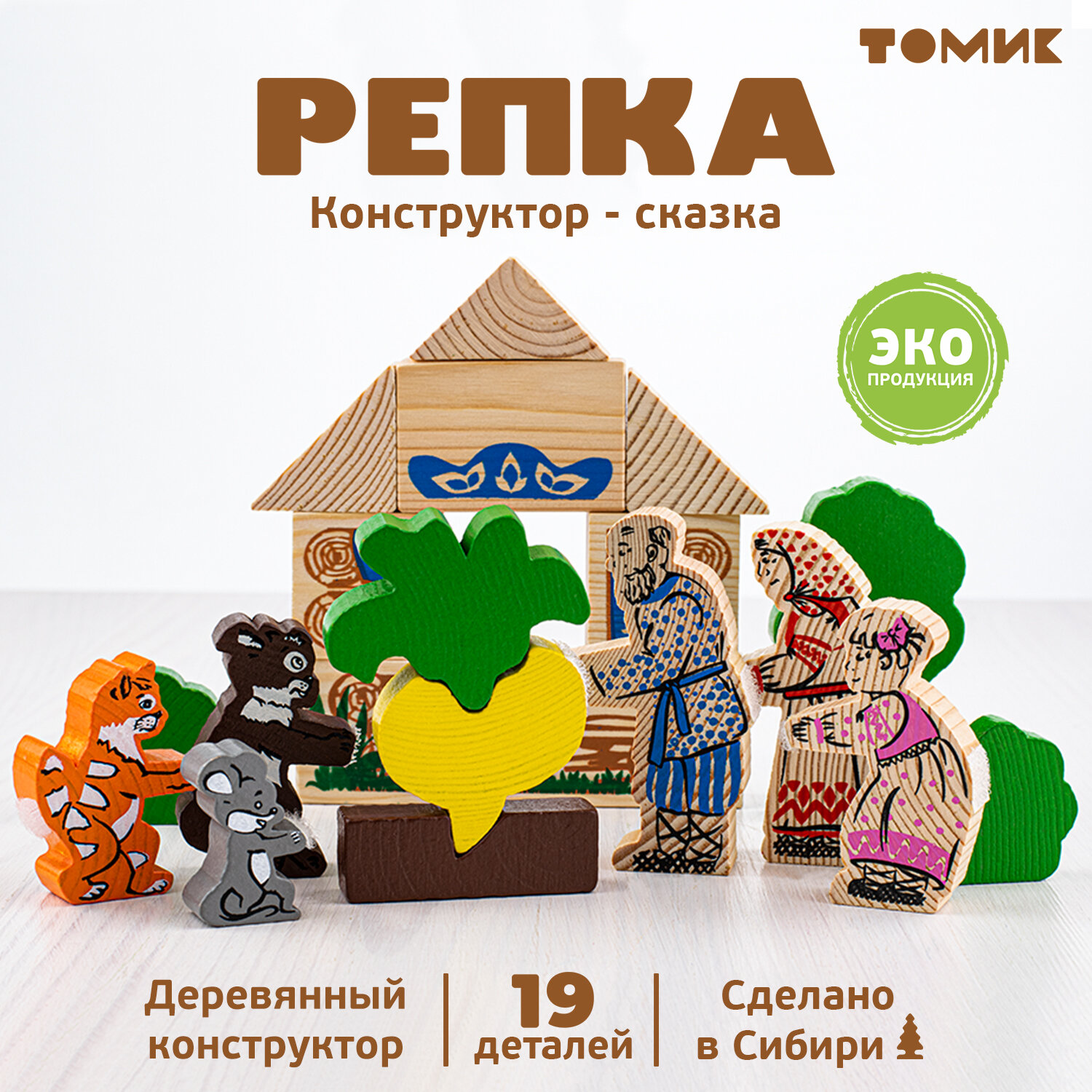 Купить Конструктор Томик "Репка", деревянная сказка, 19 элементов, для детей от 3 до 9 лет