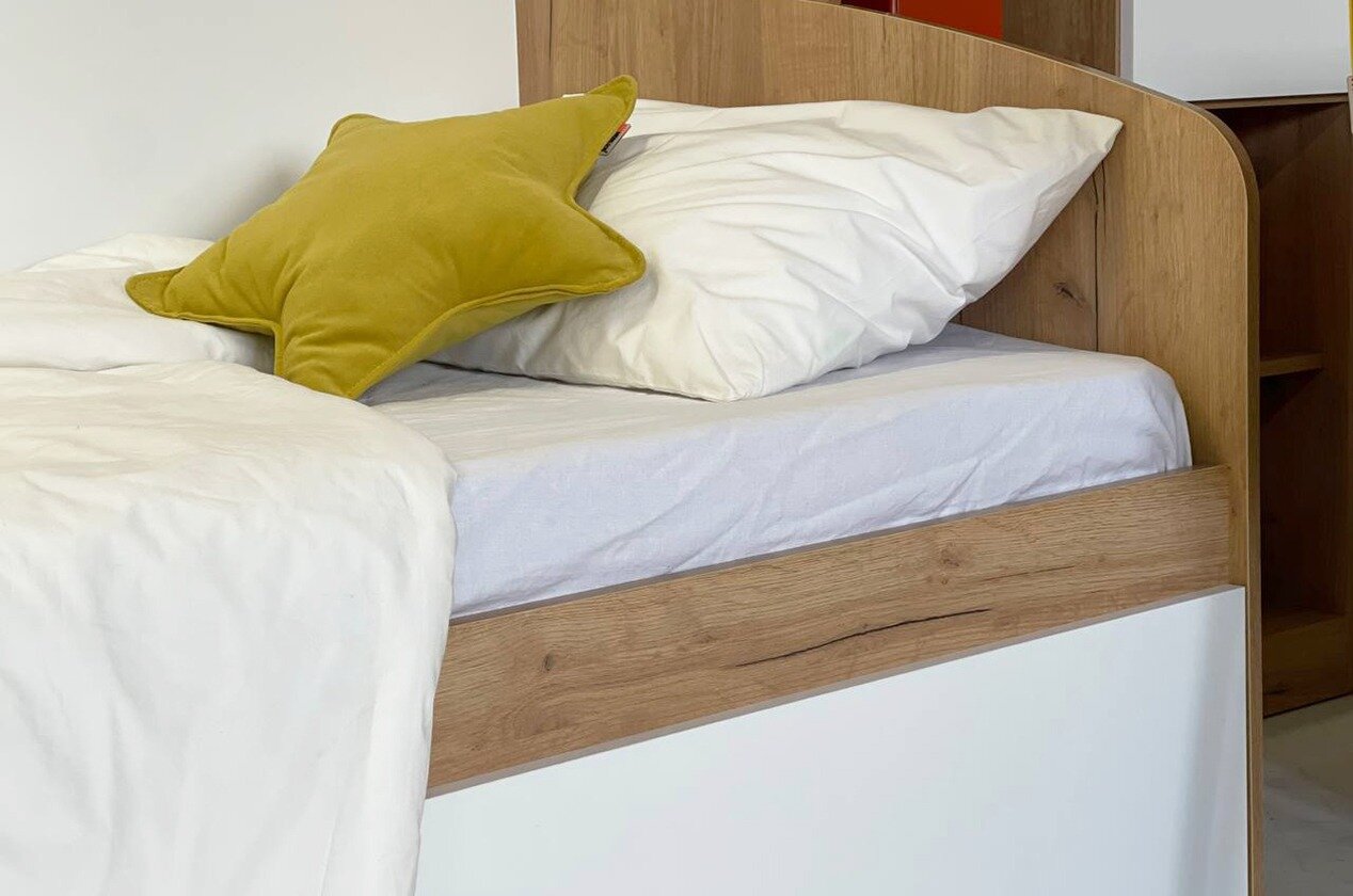 Кровать односпальная "Форсаж" 80*200 см. с ящиком, дуб крафт золотой/белый, 204*87*79 см., Mebelson