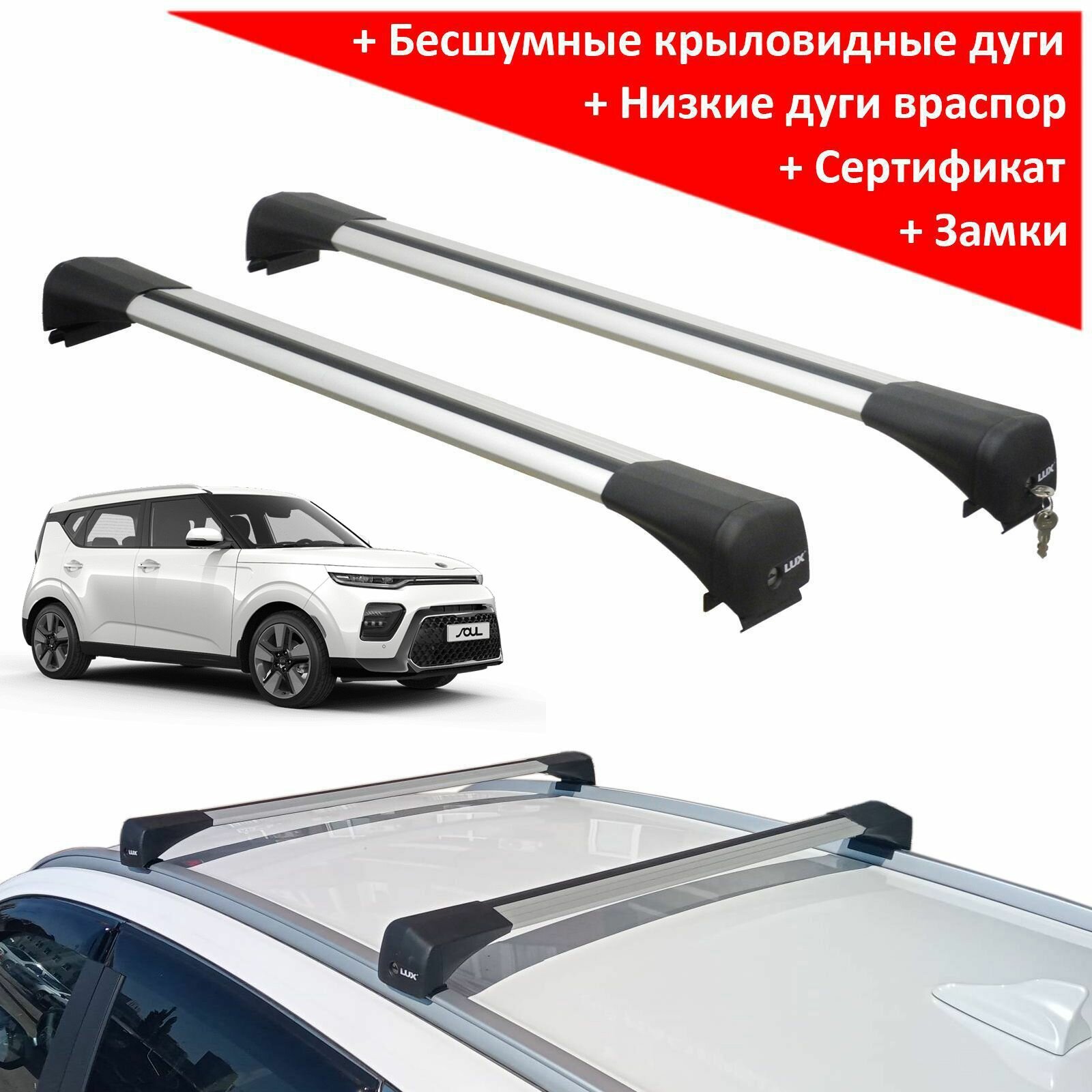 Багажник на Киа Соул 2019-. (Kia Soul), на интегрированные рейлинги, Lux Bridge, серебристые дуги интересное: