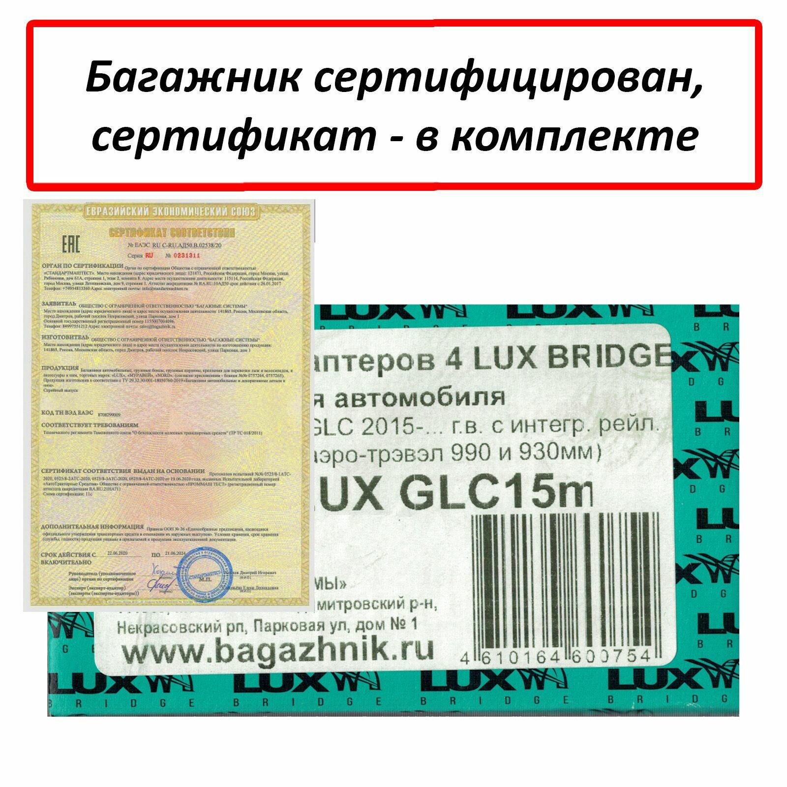 | Подробная комплектация | Комплект опор Lux Bridge, комплект адаптеров для Mercedes-Benz GLC 2015-..., комплект поперечных крыловидных дуг серебристого цвета |