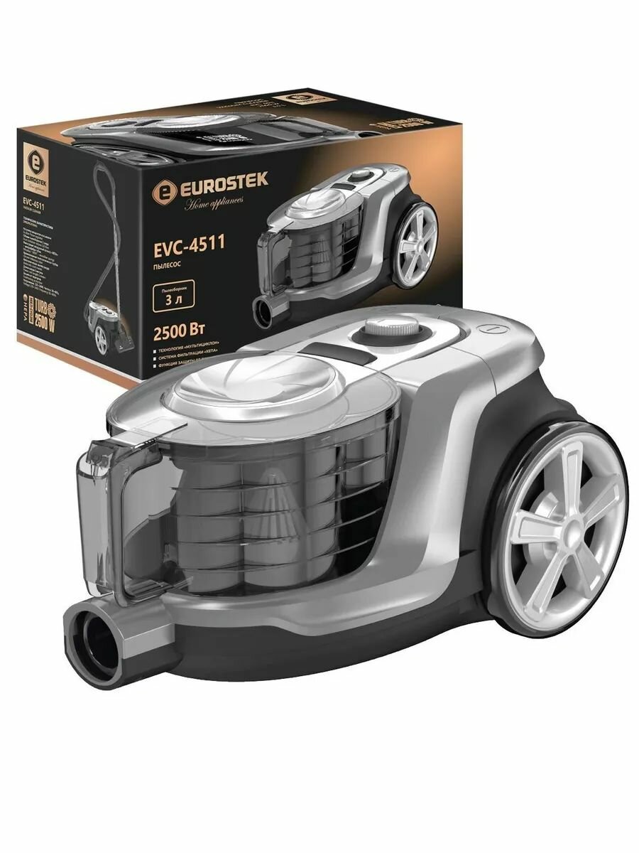 Пылесос Eurostek EVC-4511 (серебристый, 2500/420Вт, Мультициклон, Hepa+микрофильтр)