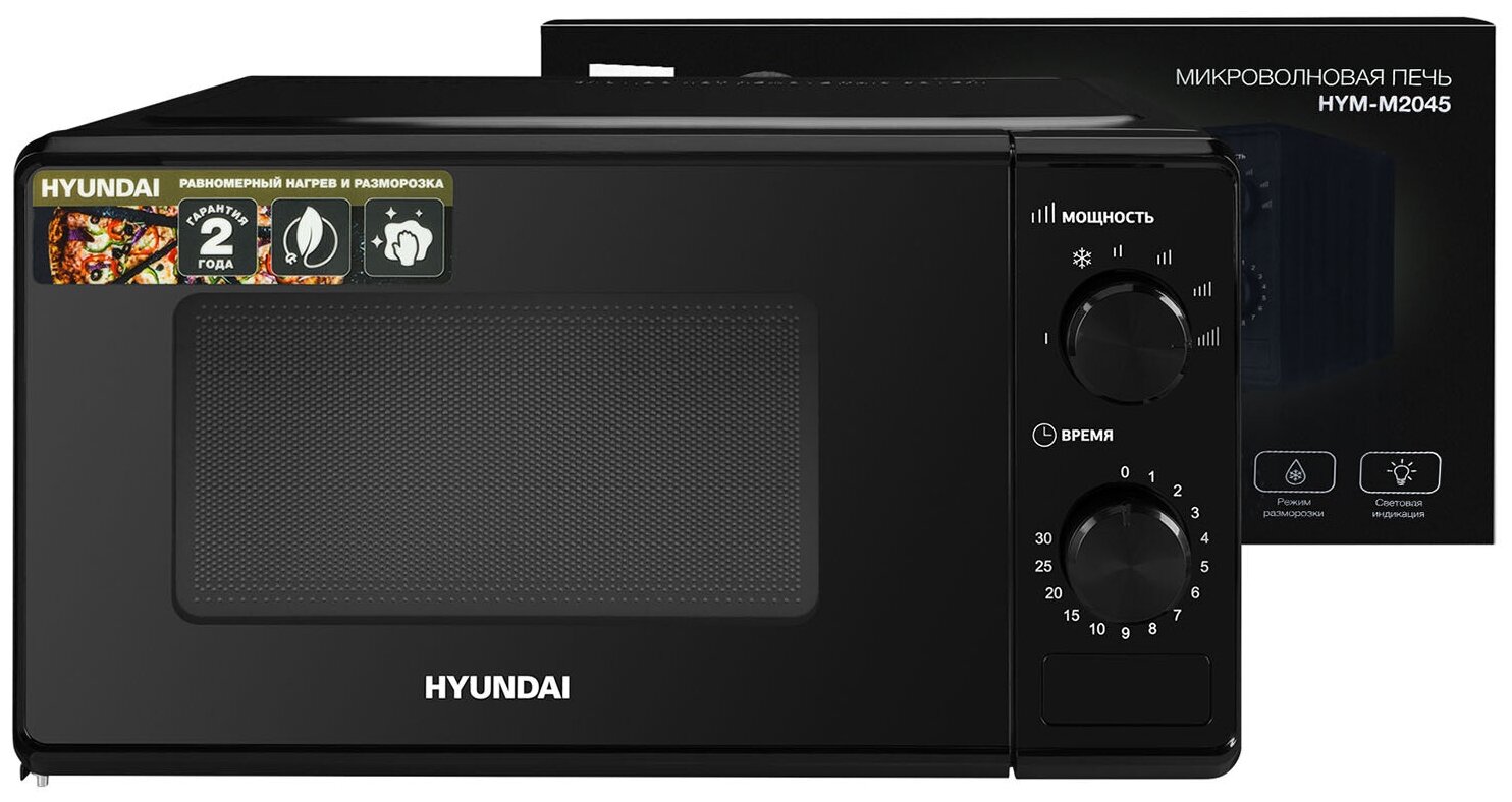 Микроволновая печь HYUNDAI HYM-M2045, 700 Вт, 20 л, черная, эмаль интересное: