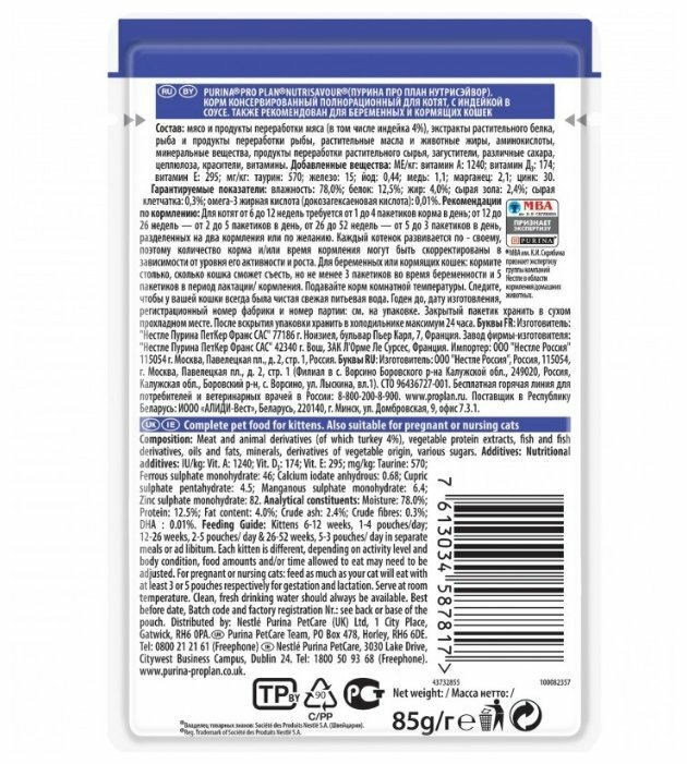 Purina Pro Plan (паучи) Паучи Кусочки в соусе для котят с индейкой (1223854712457320) 0.085 кг 24709 (34 шт) интересное: