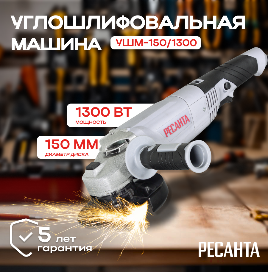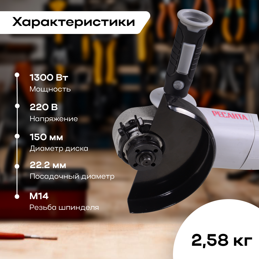 УШМ РЕСАНТА УШМ-150/1300, 1300 Вт, 150 мм