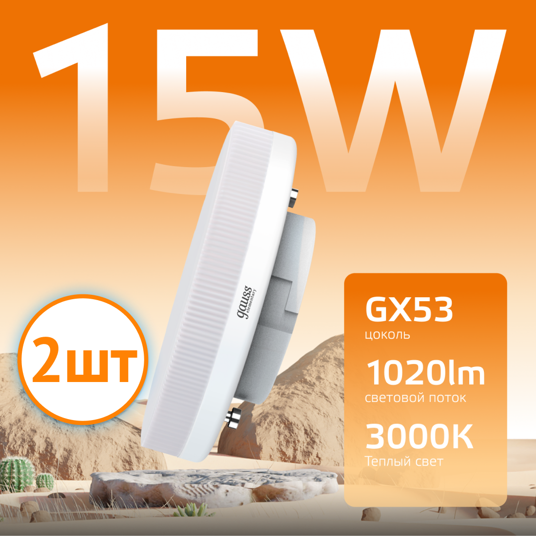 (2 шт) Лампа Gauss Elementary GX53 15W 1020lm 3000K LED 1/10/100