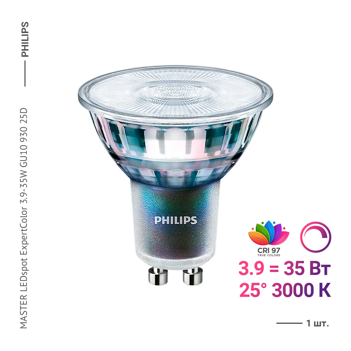 Лампочка Philips MASTER LEDspot ExpertColor 3.9-35W GU10 930 25D, 1 шт. интересное: