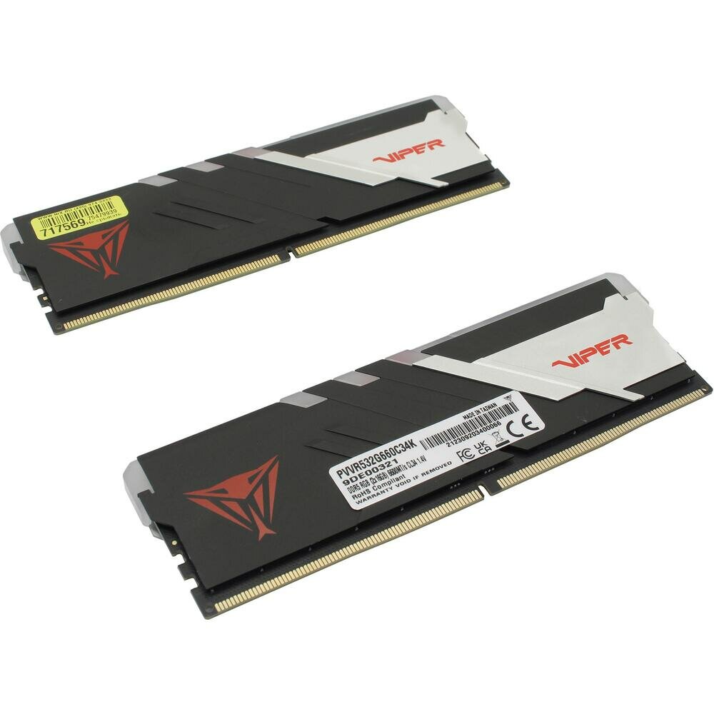 Модуль памяти Patriot Memory Viper Venom DDR5 DIMM 6600Mhz PC5-52800 CL34 32Gb Kit (2x16Gb) PVVR532G660C34K