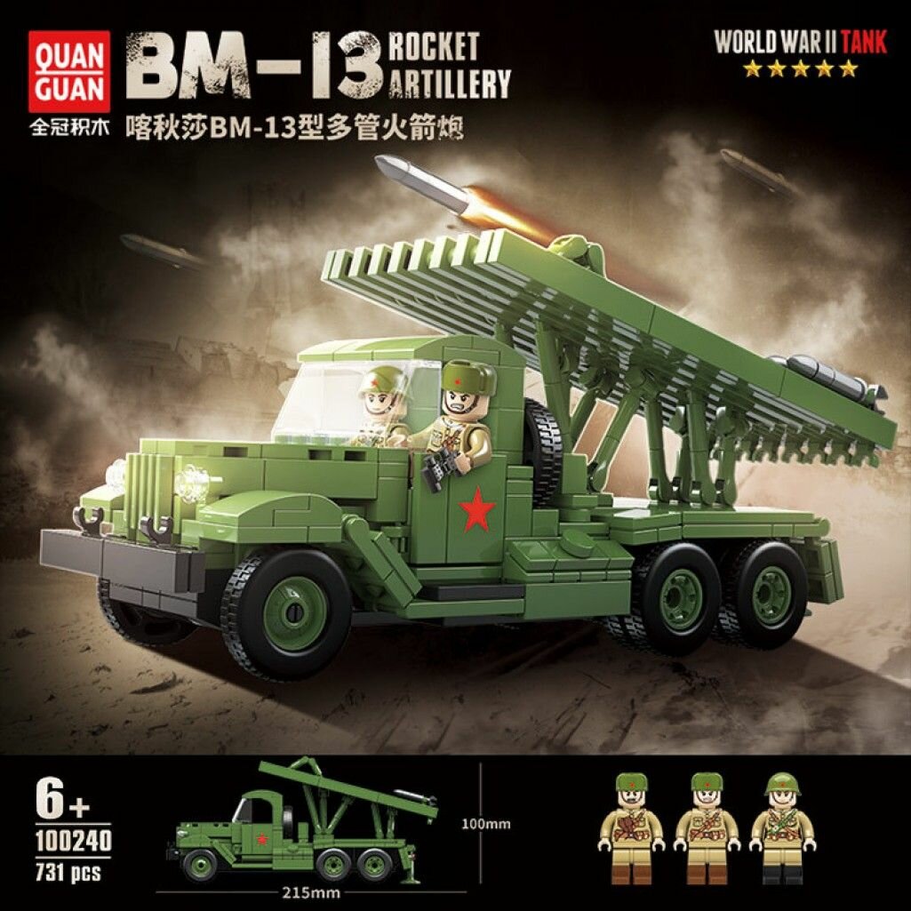 Купить Конструктор 100240 Quanguan БМ-13 (Катюша) советская боевая машина реактивной артиллерии,731 деталь, 3 минифигурки