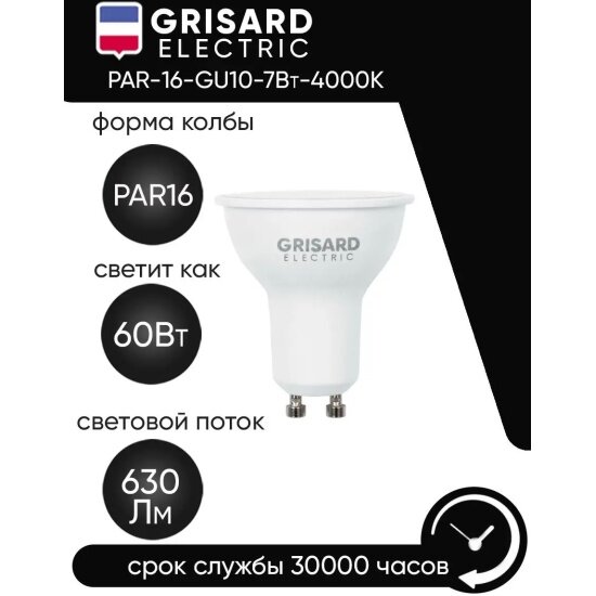 Лампа светодиодная GRISARD ELECTRIC PAR16 спот GU10 7Вт 4000К 220В 1шт